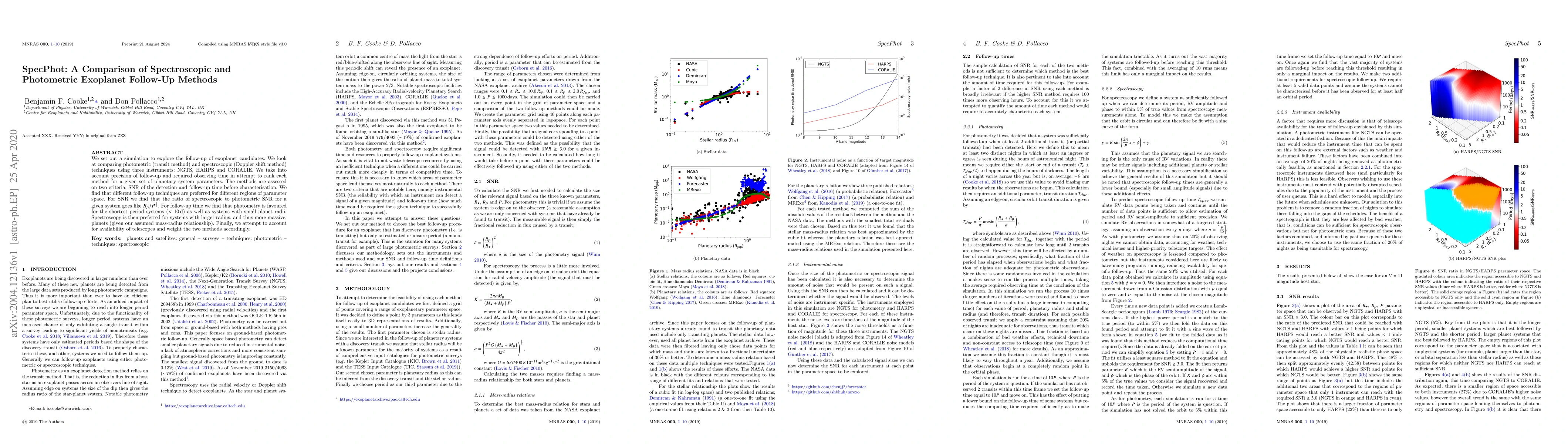 This paper compares spectroscopic and photometric methods for exoplanet follow-up, finding that photometric techniques are best for short-period, small-radius planets, while spectroscopic methods are more effective for larger, more massive planets. The study ranks these methods based on signal-to-noise ratio and follow-up time, considering instrument precision and observing time.