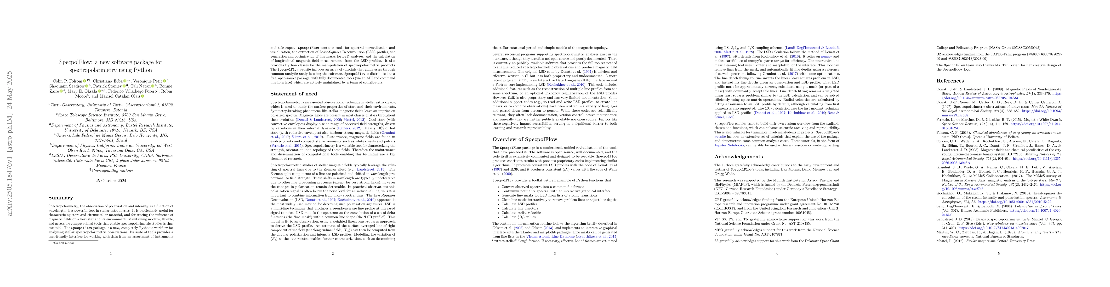 The paper introduces SpecpolFlow, a Python-based software package for analyzing stellar spectropolarimetric observations, offering tools for spectral normalization, LSD profile extraction, line mask generation, magnetic field calculation, and manipulation of spectropolarimetric products.
