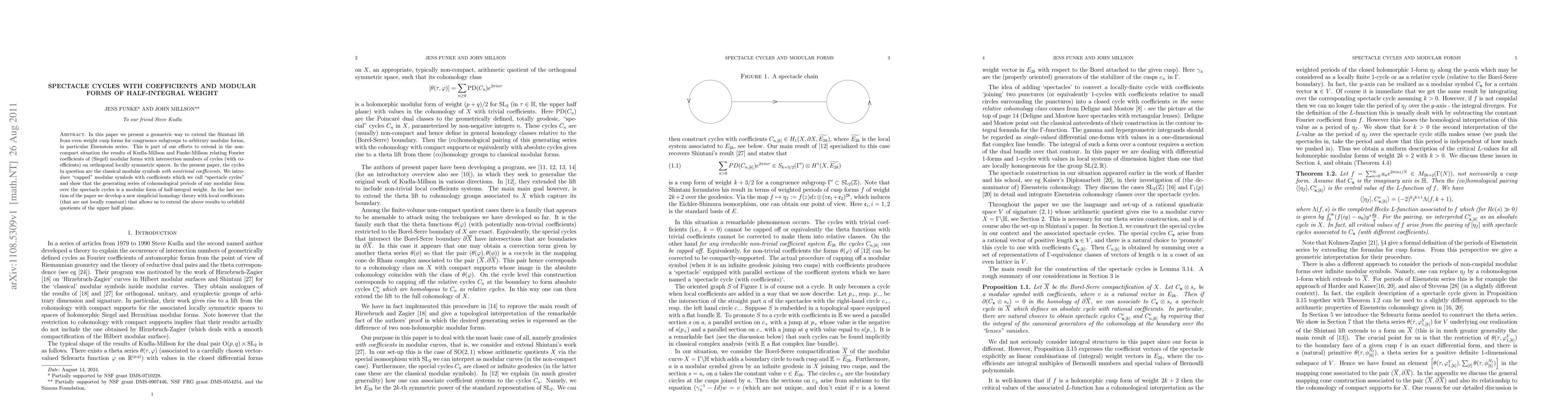 This paper introduces a geometric method to extend the Shintani lift to modular forms of half-integral weight, specifically using "spectacle cycles" as capped modular symbols. It develops a new simplicial homology theory with non-locally constant coefficients to extend these results to orbifold quotients.