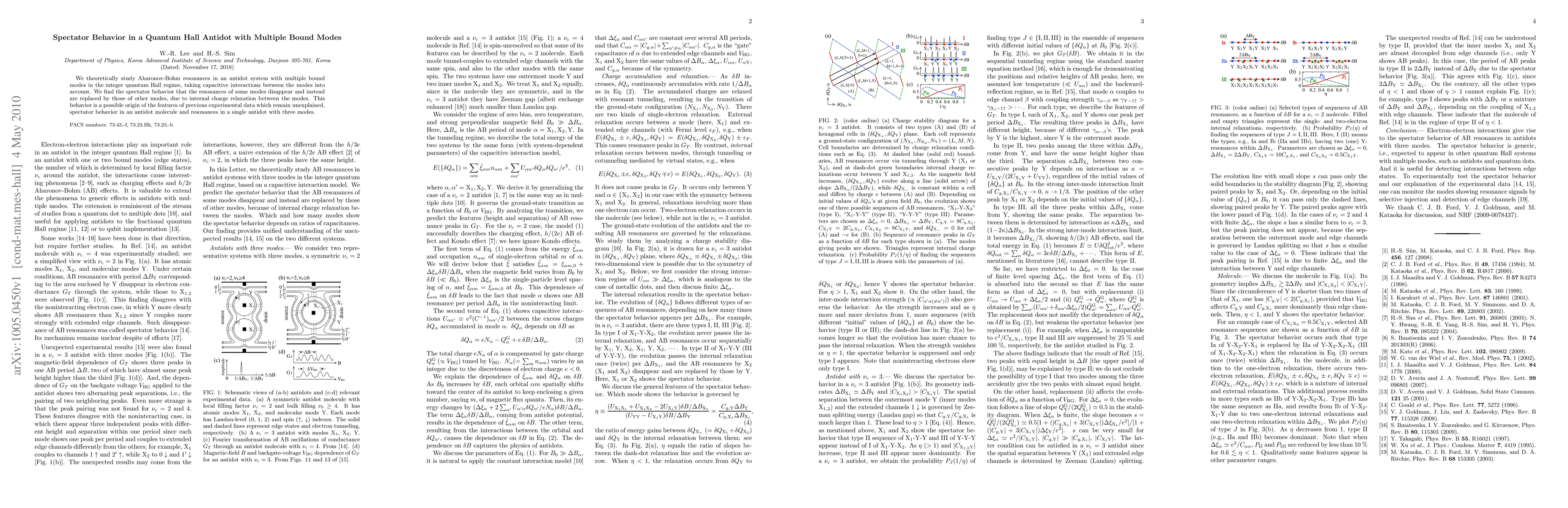 This paper investigates Aharonov-Bohm resonances in a quantum Hall antidot system with multiple bound modes, revealing that some resonances vanish due to internal charge relaxation, leading to "spectator behavior" where other modes' resonances emerge instead. This phenomenon may explain previously unexplained experimental data on antidot molecules and single antidots with three modes.