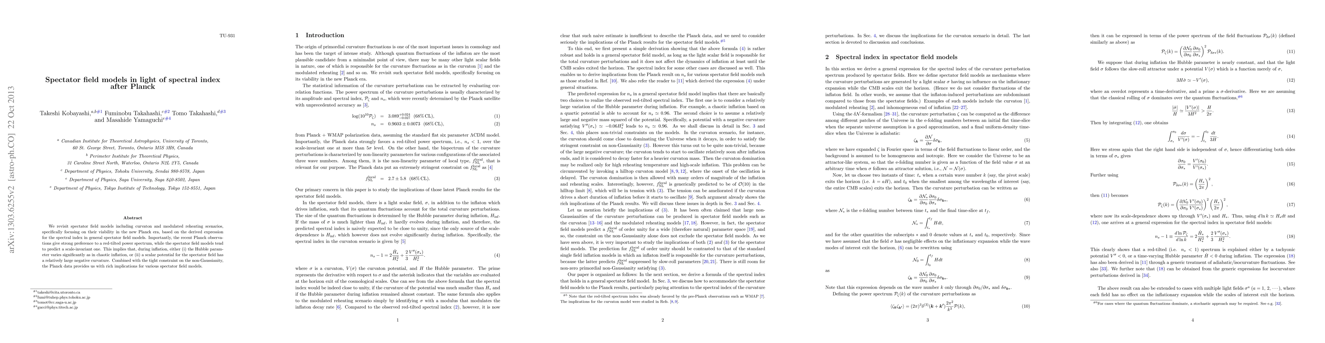 We revisit spectator field models including curvaton and modulated reheating scenarios, specifically focusing on their viability in the new Planck era, based on the derived expression for the spectral index in general spectator field models. Importantly, the recent Planck observations give strong preference to a red-tilted power spectrum, while the spectator field models tend to predict a scale-invariant one. This implies that, during inflation, either (i) the Hubble parameter varies significantly as in chaotic inflation, or (ii) a scalar potential for the spectator field has a relatively large negative curvature. Combined with the tight constraint on the non-Gaussianity, the Planck data provides us with rich implications for various spectator field models.