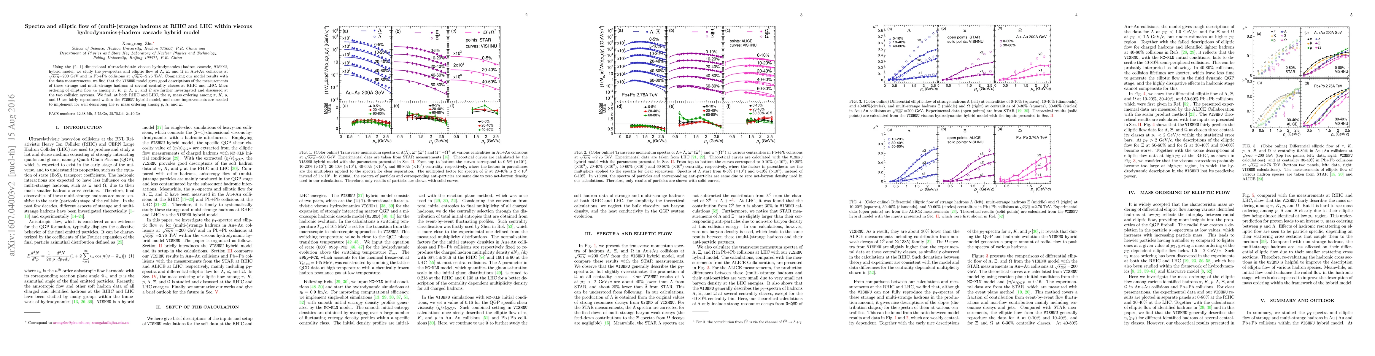 This paper uses the VISHNU hybrid model to study the $p_{\rm T}$-spectra and elliptic flow of strange and multi-strange hadrons in heavy-ion collisions at RHIC and LHC. The model generally describes the data but requires improvements to better match the mass ordering of elliptic flow.