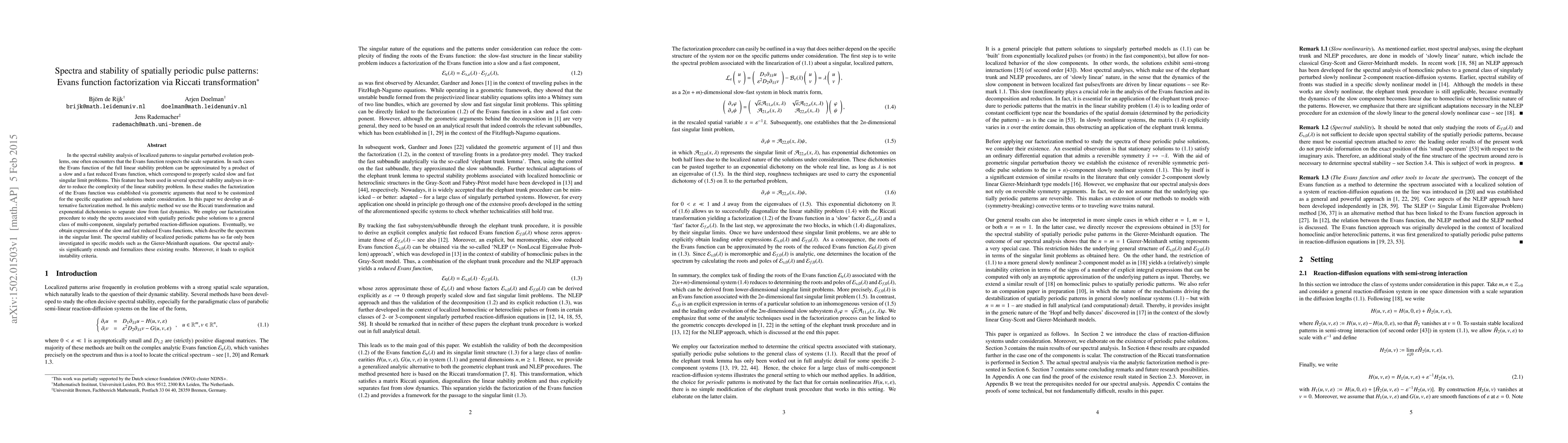 Researchers develop an alternative method to factorize the Evans function for spectral stability analysis of spatially periodic pulse patterns in reaction-diffusion equations, leading to explicit instability criteria.