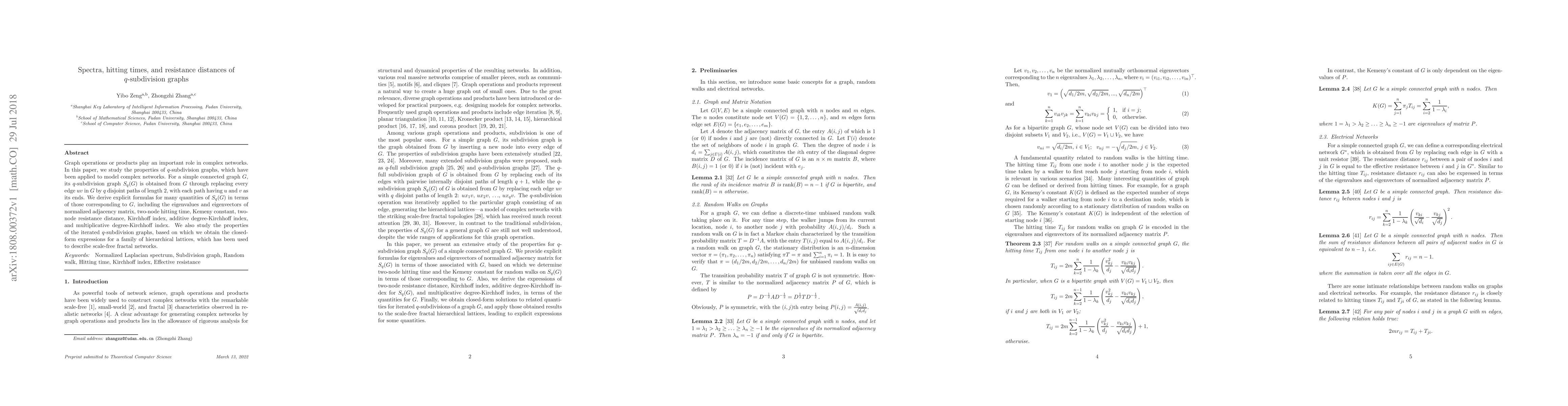 This paper investigates the properties of $q$-subdivision graphs, derived from a base graph $G$ by replacing each edge with $q$ disjoint paths. It provides explicit formulas for various quantities in $S_q(G)$ in terms of $G$, including eigenvalues, hitting times, resistance distances, and indices, and explores the properties of iterated $q$-subdivision graphs to derive closed-form expressions for hierarchical lattices.