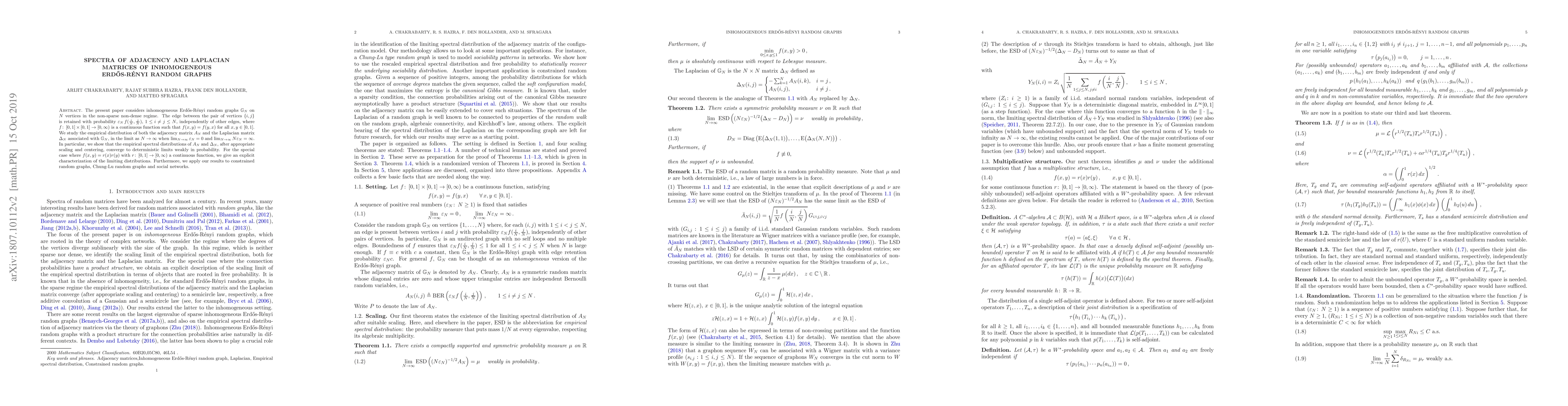 This paper investigates the spectra of adjacency and Laplacian matrices for inhomogeneous Erdős-Rényi random graphs in the non-dense regime. It demonstrates that the empirical spectral distributions of these matrices converge to deterministic limits as the number of vertices tends to infinity.