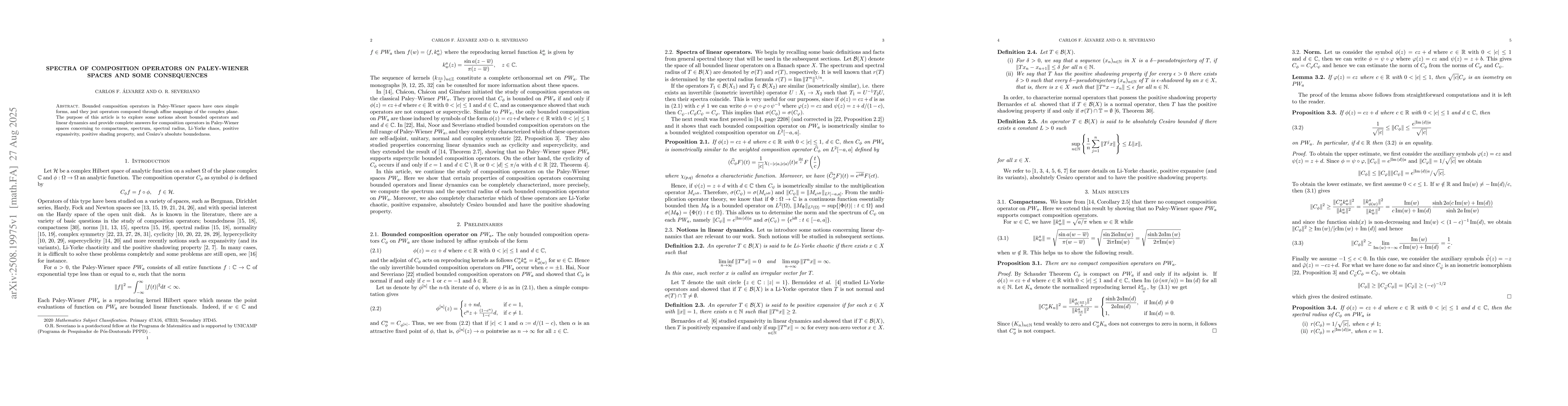 Bounded composition operators in Paley-Wiener spaces have ones simple forms, and they jsut operators composed through affine mappings of the complex plane. The purpose of this article is to explore some notions about bounded operators and linear dynamics and provide complete answers for composition operators in Paley-Wiener spaces concerning to compactness, spectrum, spectral radius, Li-Yorke chaos, positive expansivity, positive shading property, and Ces\`aro's absolute boundedness.