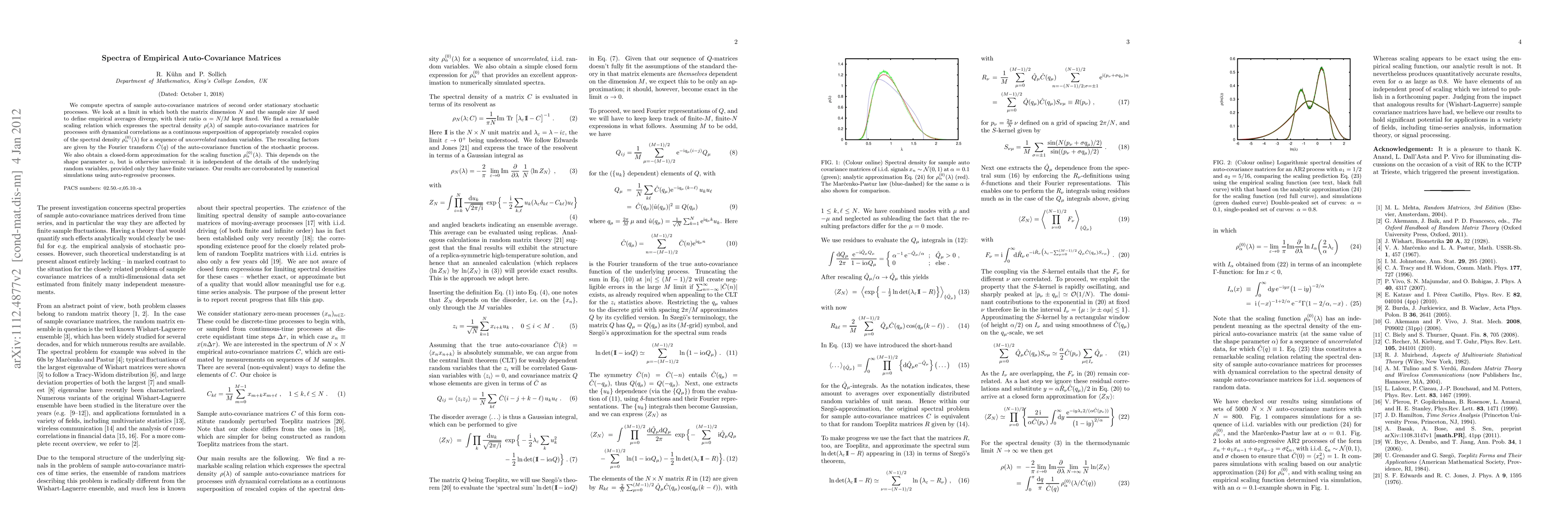 This paper investigates the spectra of empirical auto-covariance matrices for second-order stationary stochastic processes, revealing a scaling relation for the spectral density that depends on the ratio of matrix dimension to sample size. The findings are supported by numerical simulations of auto-regressive processes.