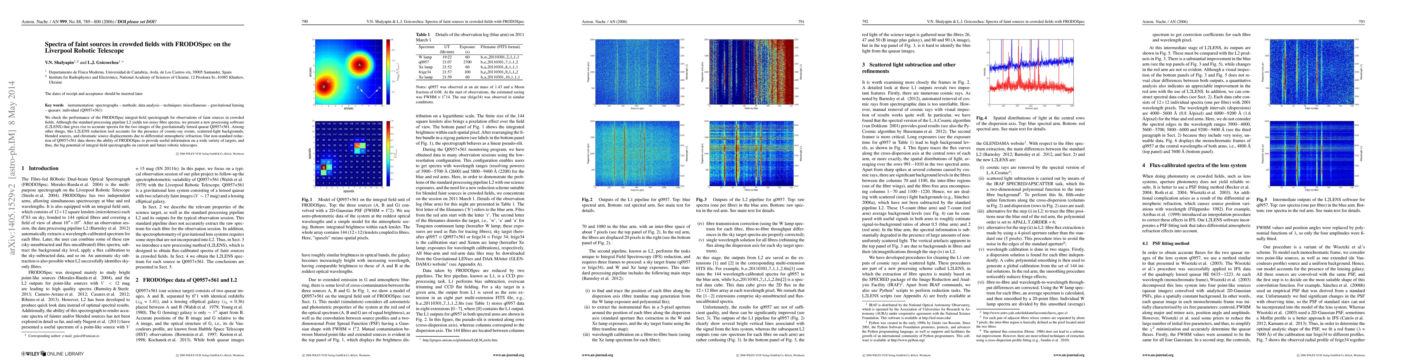 This paper evaluates the FRODOSpec spectrograph for observing faint sources in crowded fields, finding that the standard L2 pipeline is too noisy. A new software, L2LENS, is introduced to accurately process spectra, demonstrated through the analysis of the gravitationally lensed quasar Q0957+561, showcasing FRODOSpec's potential for diverse astronomical targets.
