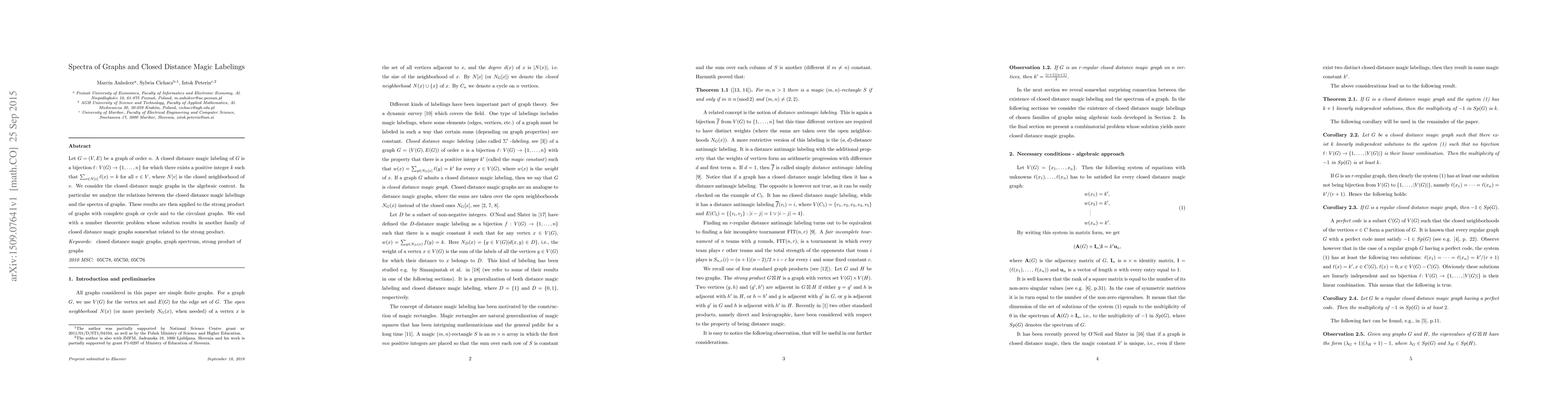 This paper explores the relationship between closed distance magic labelings and the spectra of graphs, applying these concepts to the strong product of graphs with complete or cycle graphs and circulant graphs. It also introduces a number theoretic problem leading to a new family of closed distance magic graphs.