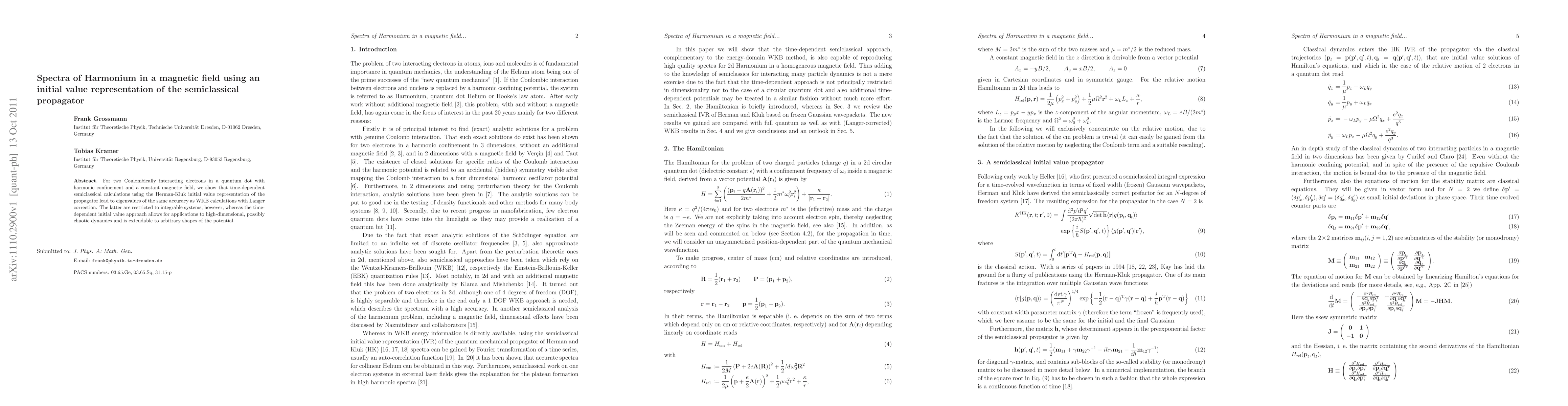 This paper demonstrates that the Herman-Kluk initial value representation of the semiclassical propagator accurately calculates the spectra of a quantum dot with two interacting electrons under harmonic confinement and a magnetic field, rivaling the accuracy of WKB calculations with Langer correction. Unlike WKB, this method is applicable to high-dimensional and chaotic systems and can handle various potential shapes.