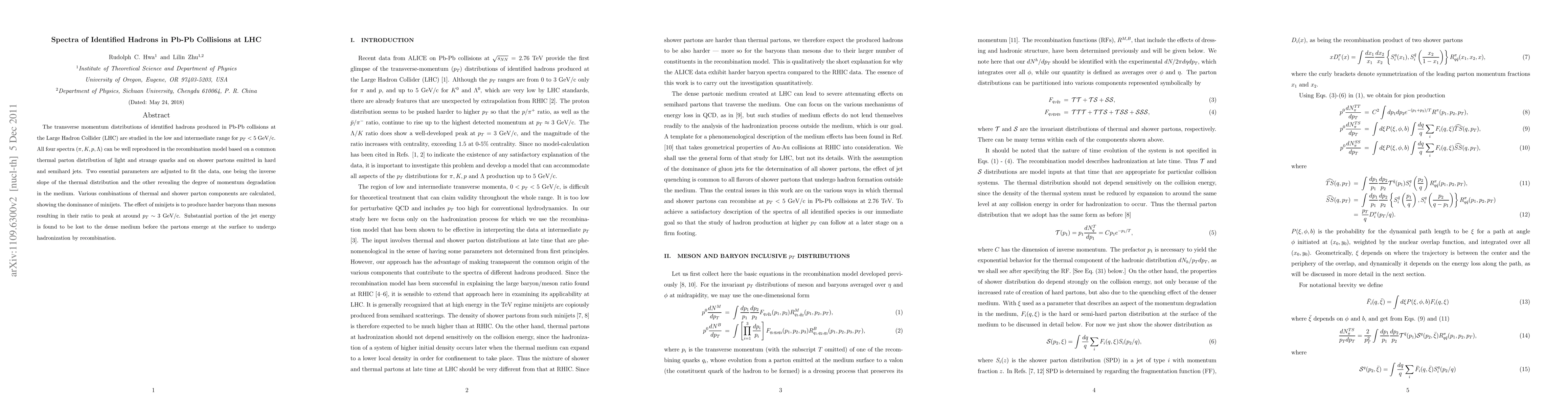 This study investigates the transverse momentum distributions of identified hadrons ($\pi, K, p, \Lambda$) in Pb-Pb collisions at the LHC, finding that a recombination model can reproduce the spectra using a common thermal parton distribution and shower partons from jets. The model highlights the dominance of minijets and significant energy loss in the dense medium.
