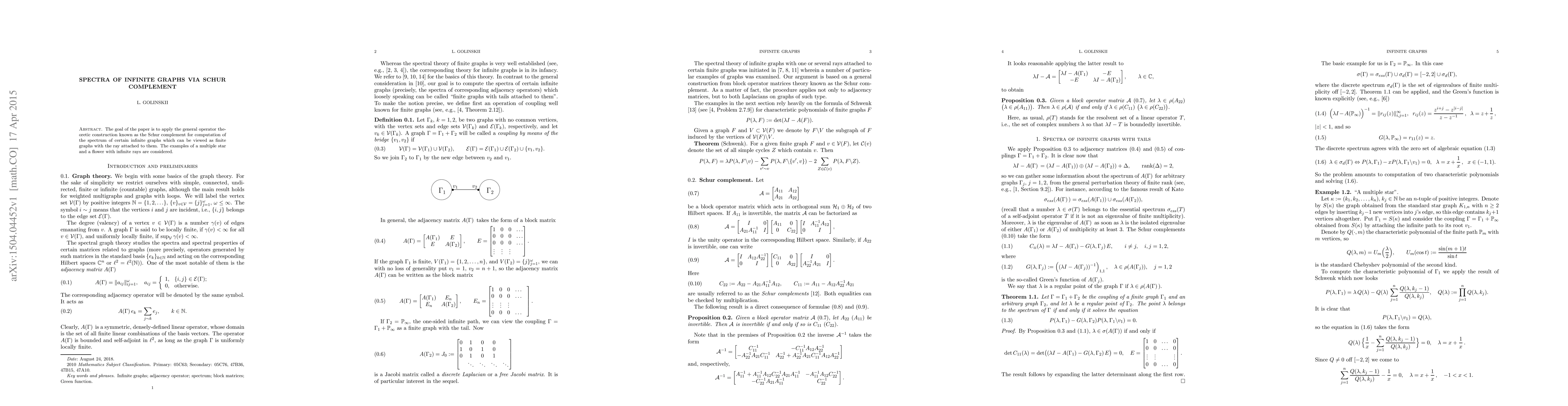 This paper utilizes the Schur complement to compute the spectra of infinite graphs, specifically focusing on structures like multiple stars and flowers with infinite rays. The method provides insights into the spectral properties of these extended graph configurations.