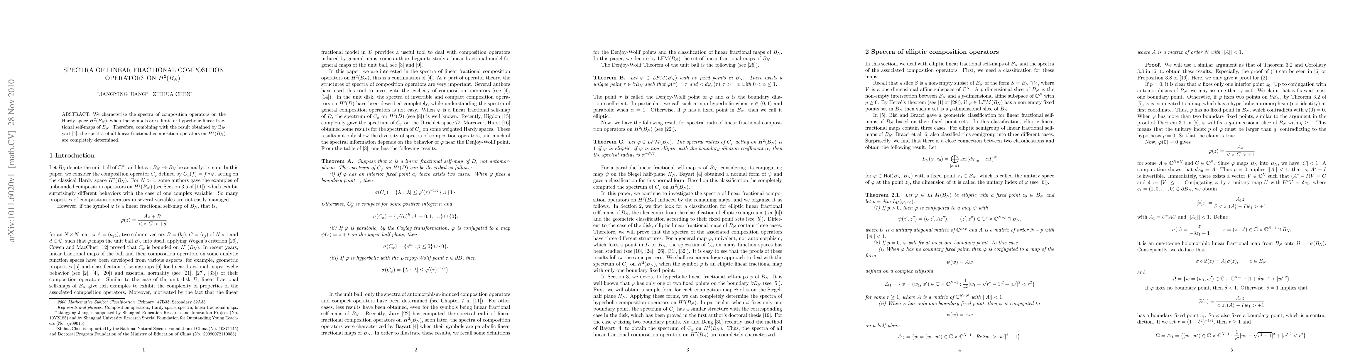 We characterize the spectra of composition operators on the Hardy space $H^2(B_N)$, when the symbols are elliptic or hyperbolic linear fractional self-maps of $B_N$. Therefore, combining with the result obtained by Bayart \cite{B10}, the spectra of all linear fractional composition operators on $H^2(B_N)$ are completely determined.