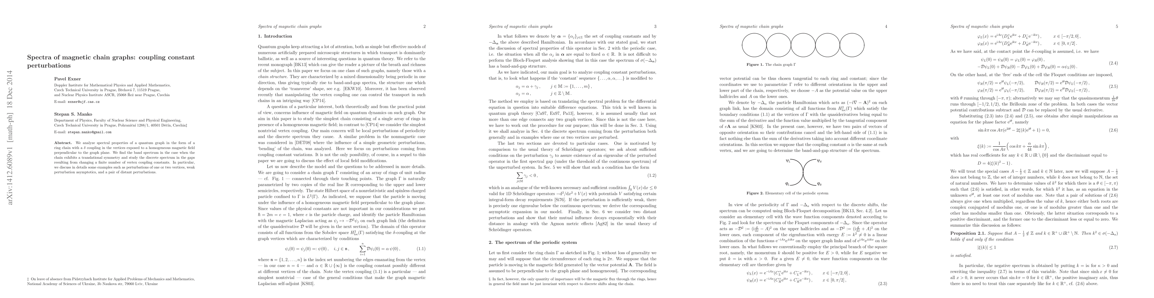 We analyze spectral properties of a quantum graph in the form of a ring chain with a $\delta$ coupling in the vertices exposed to a homogeneous magnetic field perpendicular to the graph plane. We find the band spectrum in the case when the chain exhibits a translational symmetry and study the discrete spectrum in the gaps resulting from changing a finite number of vertex coupling constants. In particular, we discuss in details some examples such as perturbations of one or two vertices, weak perturbation asymptotics, and a pair of distant perturbations.
