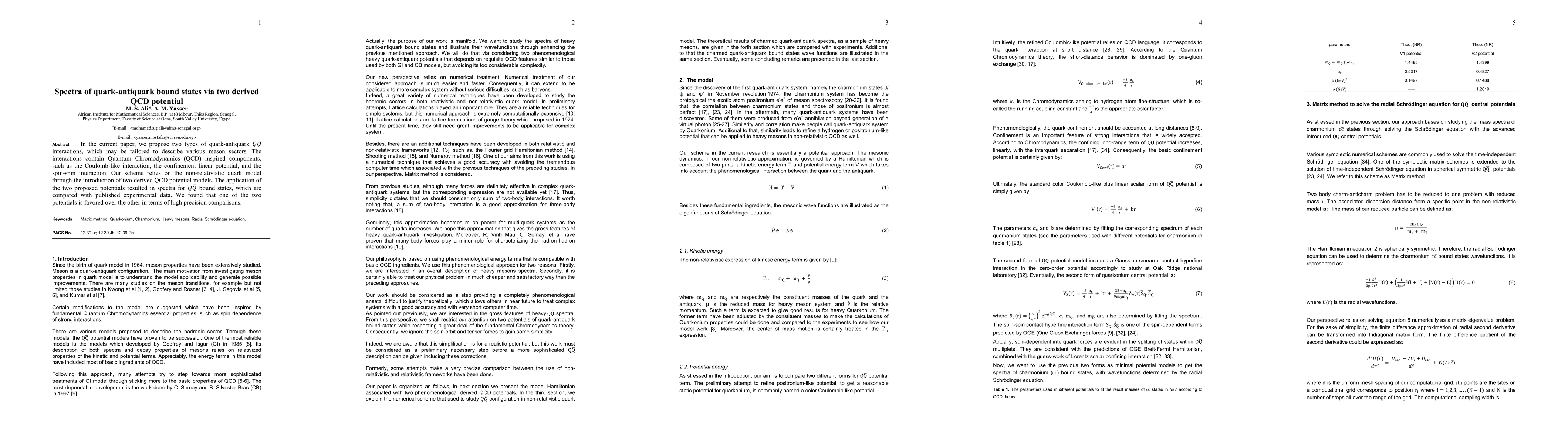 In the current paper, we propose two types of quark-antiquark interactions, which may be tailored to describe various meson sectors. The interactions contain Quantum Chromodynamics (QCD) inspired components, such as the Coulomb-like interaction, the confinement linear potential, and the spin-spin interaction. Our scheme relies on the non-relativistic quark model through the introduction of two derived QCD potential models. The application of the two proposed potentials resulted in spectra for quark-antiquark bound states, which are compared with published experimental data. We found that one of the two potentials is favored over the other in terms of high precision comparisons.