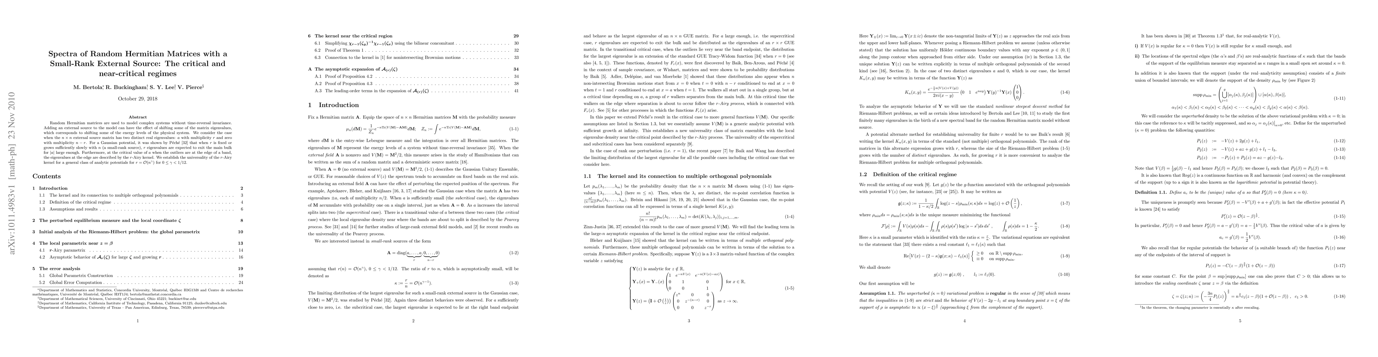 This paper investigates the eigenvalue spectra of random Hermitian matrices with a small-rank external source, showing that for certain potentials, the eigenvalues shift and follow the $r$-Airy kernel at critical values, establishing universality in this behavior.