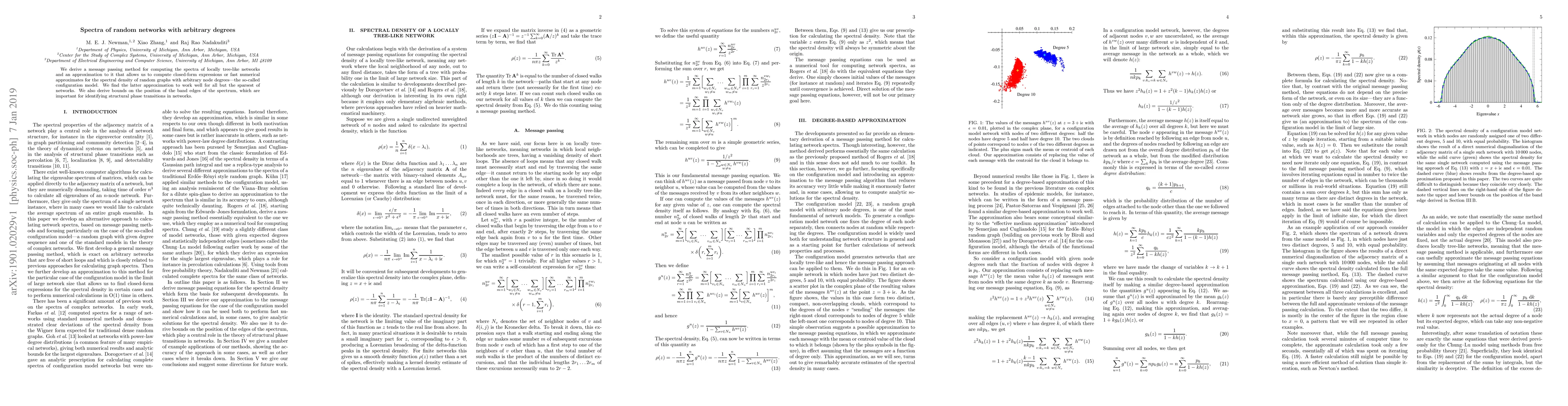 We derive a message passing method for computing the spectra of locally tree-like networks and an approximation to it that allows us to compute closed-form expressions or fast numerical approximates for the spectral density of random graphs with arbitrary node degrees -- the so-called configuration model. We find the latter approximation to work well for all but the sparsest of networks. We also derive bounds on the position of the band edges of the spectrum, which are important for identifying structural phase transitions in networks.