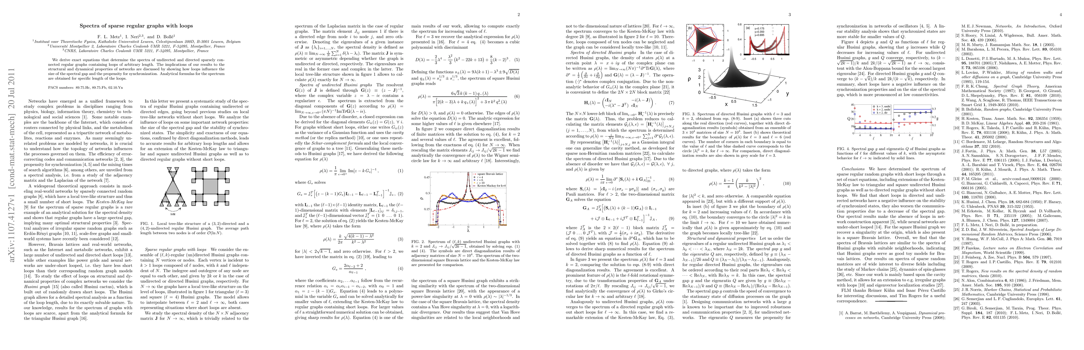 We derive exact equations that determine the spectra of undirected and directed sparsely connected regular graphs containing loops of arbitrary length. The implications of our results to the structural and dynamical properties of networks are discussed by showing how loops influence the size of the spectral gap and the propensity for synchronization. Analytical formulas for the spectrum are obtained for specific length of the loops.