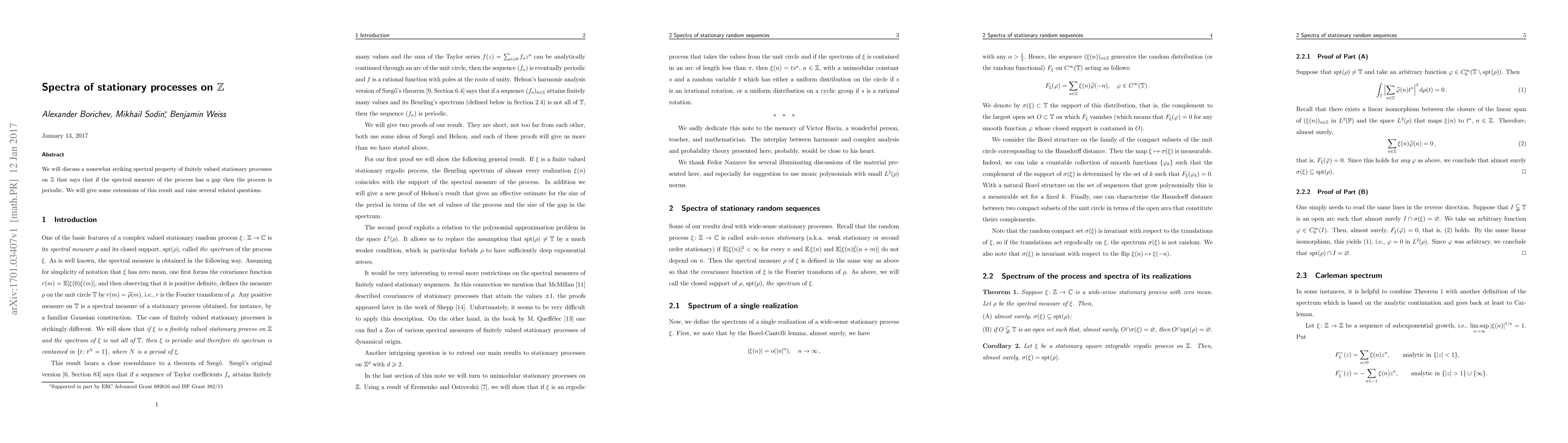 We will discuss a somewhat striking spectral property of finitely valued stationary processes on Z that says that if the spectral measure of the process has a gap then the process is periodic. We will give some extensions of this result and raise several related questions.