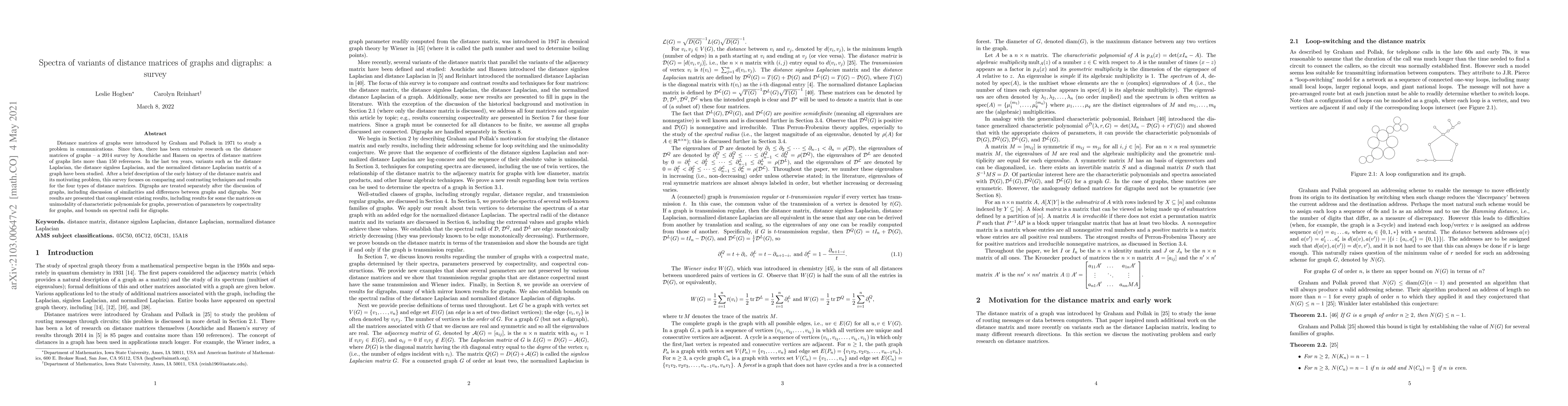 Distance matrices of graphs were introduced by Graham and Pollack in 1971 to study a problem in communications. Since then, there has been extensive research on the distance matrices of graphs -- a 2014 survey by Aouchiche and Hansen on spectra of distance matrices of graphs lists more than 150 references. In the last ten years, variants such as the distance Laplacian, the distance signless Laplacian, and the normalized distance Laplacian matrix of a graph have been studied. After a brief description of the early history of the distance matrix and its motivating problem, this survey focuses on comparing and contrasting techniques and results for the four types of distance matrices. Digraphs are treated separately after the discussion of graphs, including discussion of similarities and differences between graphs and digraphs. New results are presented that complement existing results, including results for some the matrices on unimodality of characteristic polynomials for graphs, preservation of parameters by cospectrality for graphs, and bounds on spectral radii for digraphs.