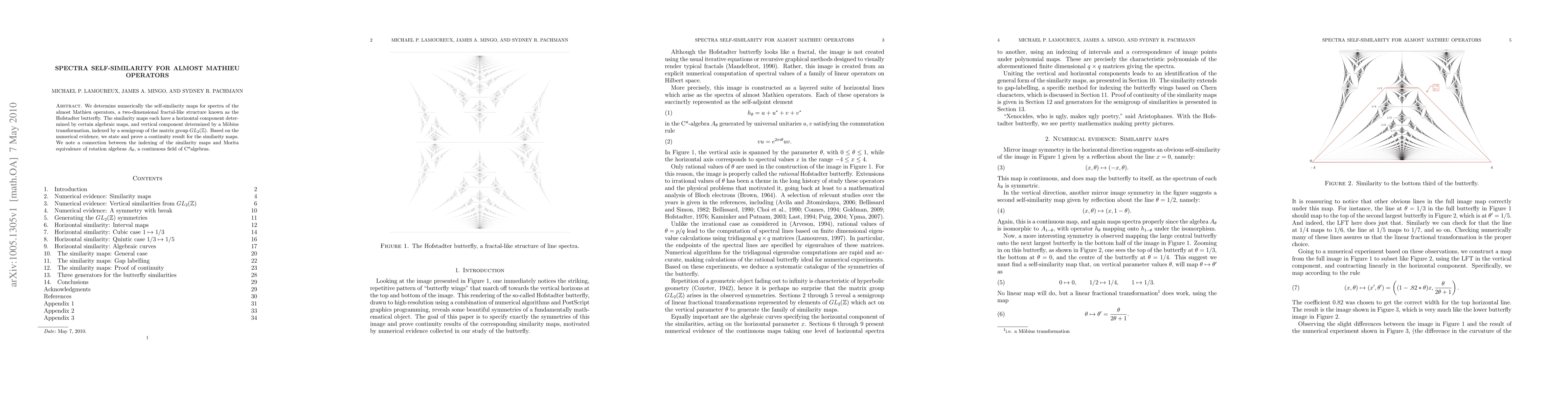 We determine numerically the self-similarity maps for spectra of the almost Mathieu operators, a two-dimensional fractal-like structure known as the Hofstadter butterfly. The similarity maps each have a horizontal component determined by certain algebraic maps, and vertical component determined by a Mobius transformation, indexed by a semigroup of the matrix group $GL_2(\Z)$. Based on the numerical evidence, we state and prove a continuity result for the similarity maps. We note a connection between the indexing of the similarity maps and Morita equivalence of rotation algebras $A_\theta$, a continuous field of C*-algebras.