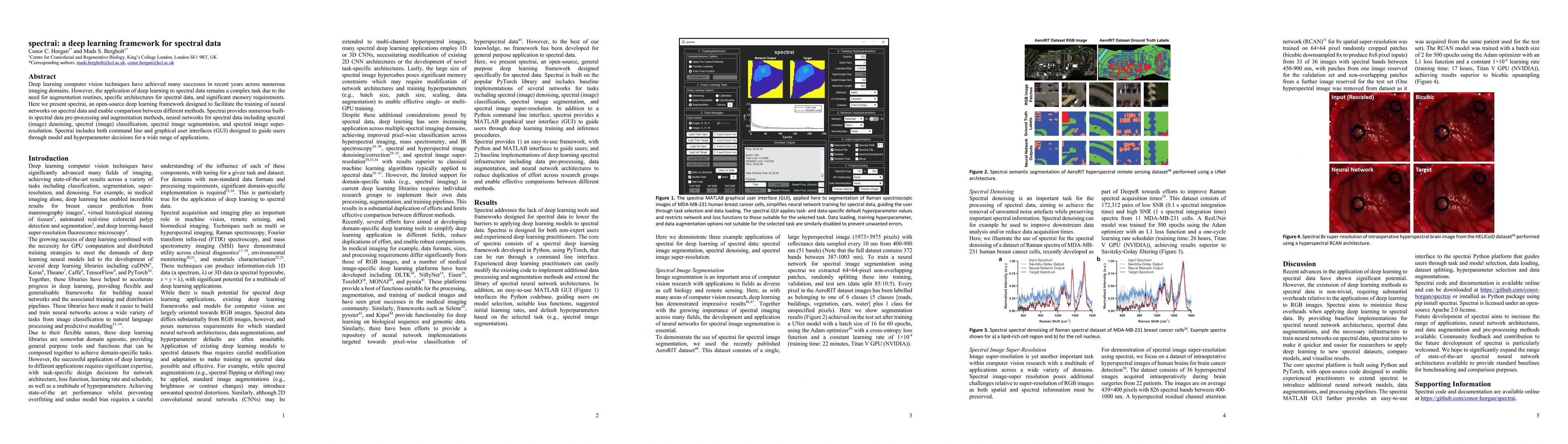 Spectrai is an open-source deep learning framework designed to facilitate neural network training on spectral data, offering built-in pre-processing, augmentation, and various neural network architectures for tasks like denoising, classification, segmentation, and super-resolution, with both CLI and GUI for user guidance.