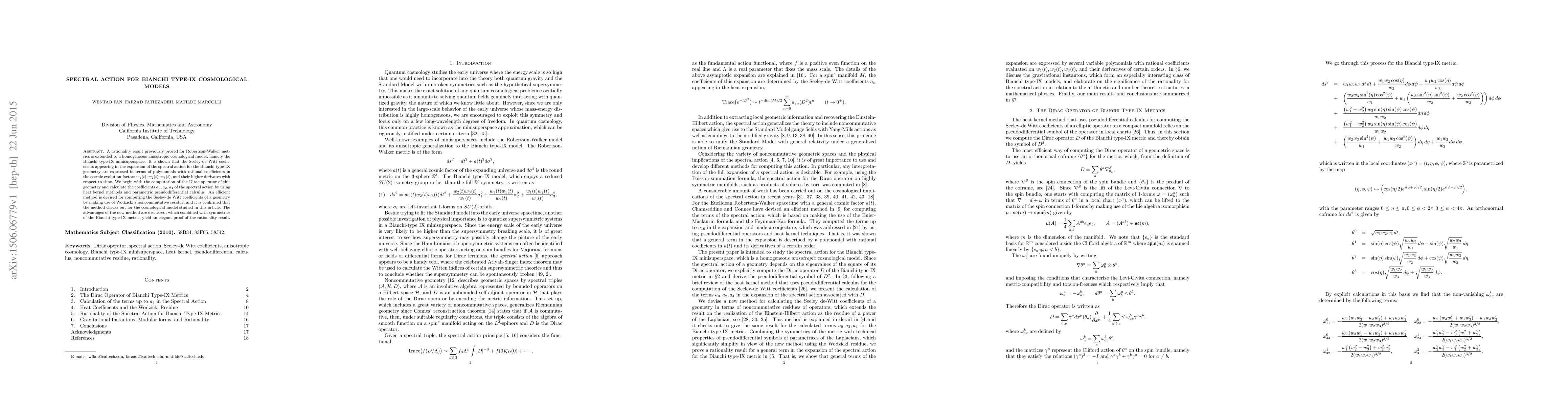 This paper extends a rationality result for Robertson-Walker metrics to Bianchi type-IX cosmological models, showing that Seeley-de Witt coefficients in the spectral action are rational polynomials in cosmic evolution factors. The study computes $a_0, a_2, a_4$ coefficients using heat kernel methods and introduces an efficient method for calculating Seeley-de Witt coefficients via Wodzicki's noncommutative residue.