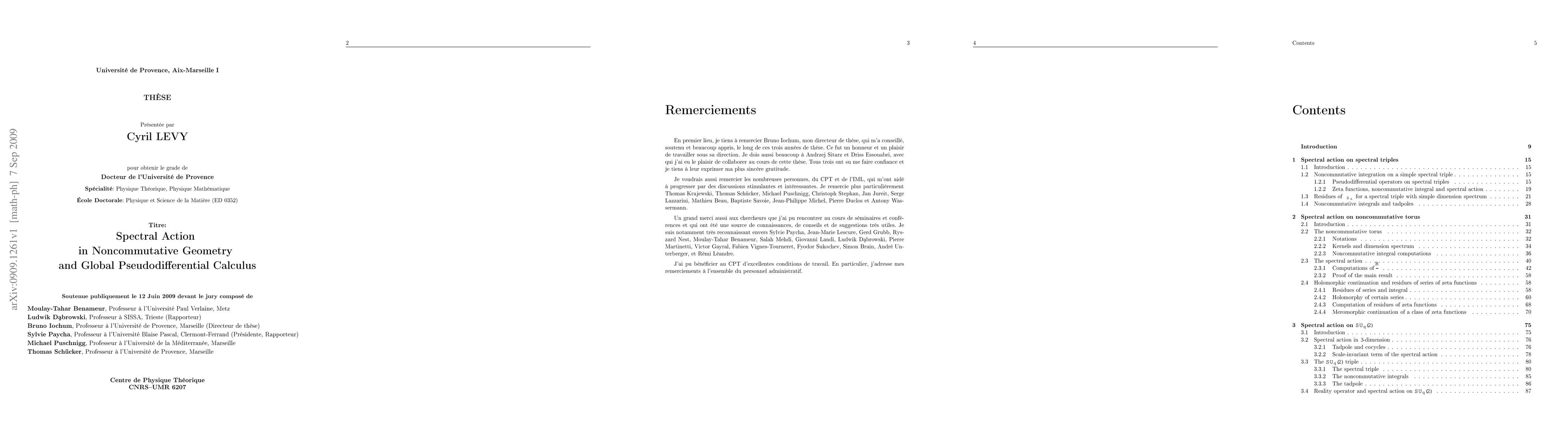 This thesis investigates the computation of the Chamseddine-Connes spectral action on noncommutative spectral triples, emphasizing the importance of a Diophantine condition for real structure. It also explores the existence of tadpoles in commutative geometries and develops a symbolic global pseudodifferential calculus for generalized Weyl-Moyal products.
