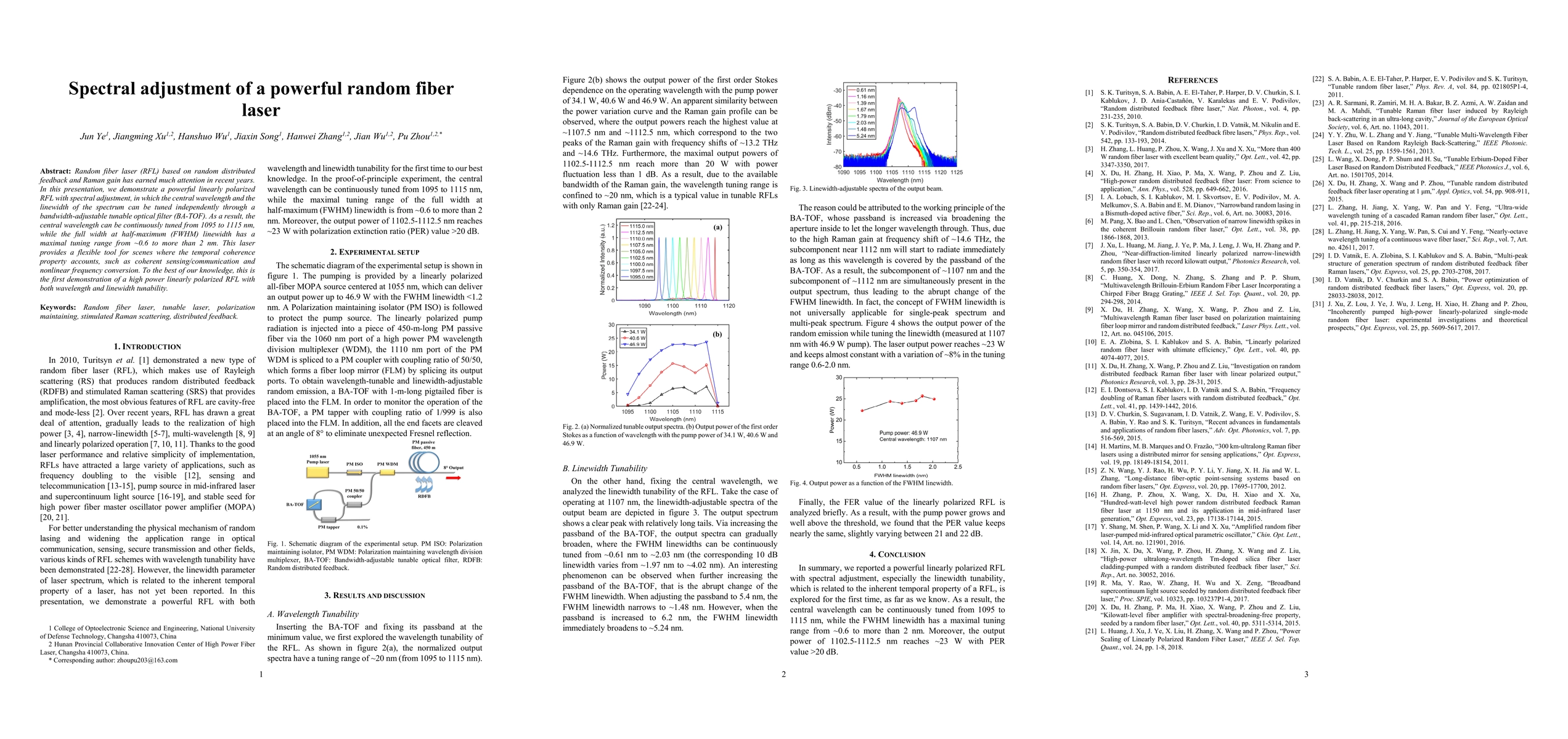This paper presents a powerful, linearly polarized random fiber laser with independent spectral adjustment capabilities, enabling continuous tuning of the central wavelength and linewidth via a tunable optical filter. This innovation provides a versatile tool for applications requiring temporal coherence, such as sensing and communication.
