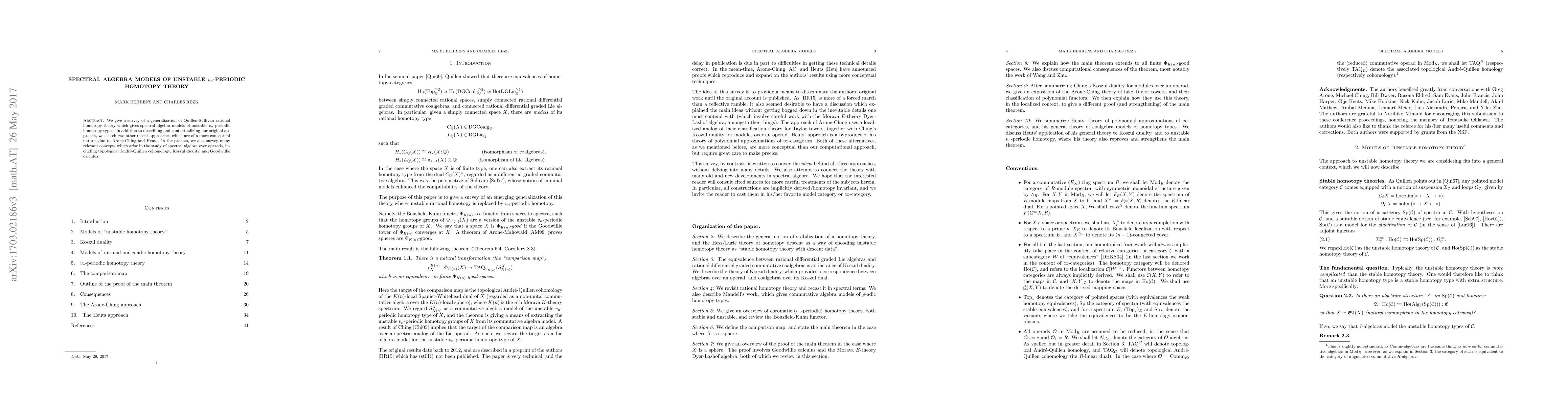 This paper surveys spectral algebra models for unstable v_n-periodic homotopy theory, extending Quillen-Sullivan rational homotopy theory. It contextualizes the authors' approach alongside conceptual methods by Arone-Ching and Heuts, while also covering related concepts like topological Andr\'e-Quillen cohomology, Koszul duality, and Goodwillie calculus.