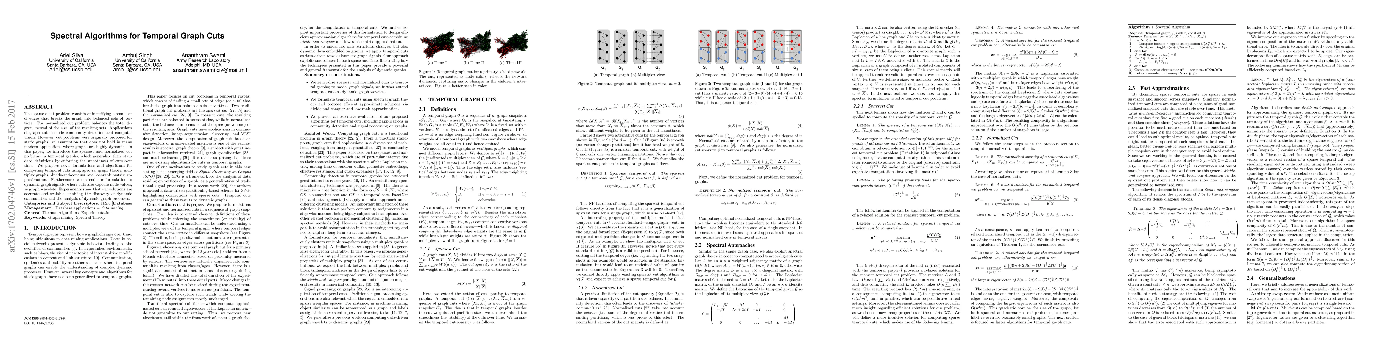 This paper introduces spectral algorithms for solving the sparsest and normalized cut problems in temporal graphs, extending these traditional static graph problems to dynamic environments. The proposed algorithms leverage spectral graph theory and low-rank matrix approximations, demonstrating scalability and accuracy in identifying dynamic communities and analyzing graph signals over time.
