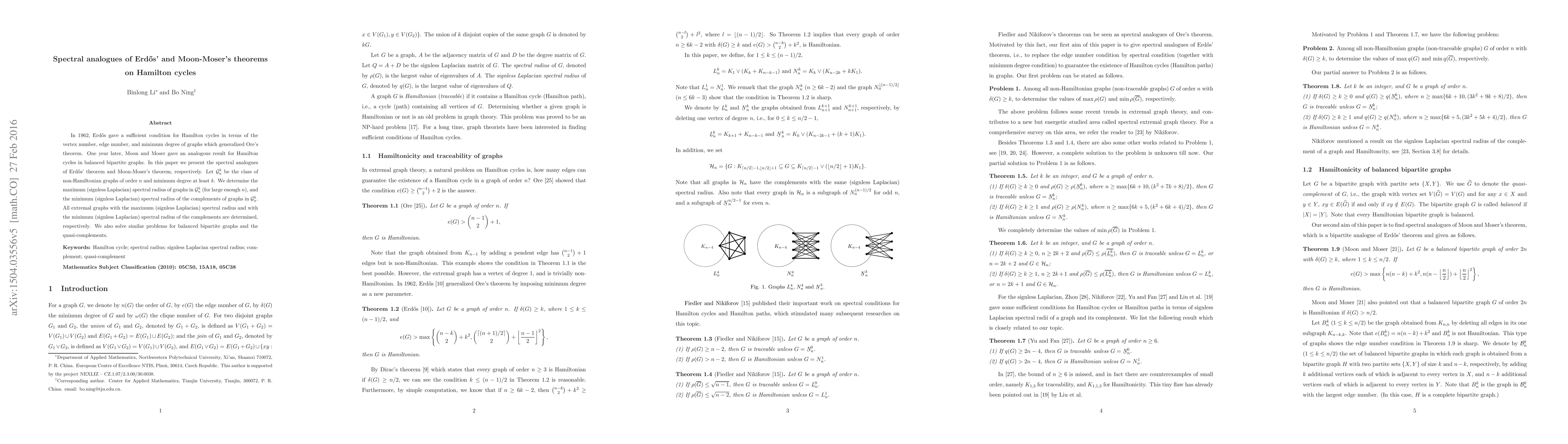 In 1962, Erd\H{o}s gave a sufficient condition for Hamilton cycles in terms of the vertex number, edge number, and minimum degree of graphs which generalized Ore's theorem. One year later, Moon and Moser gave an analogous result for Hamilton cycles in balanced bipartite graphs. In this paper we present the spectral analogues of Erd\H{o}s' theorem and Moon-Moser's theorem, respectively. Let $\mathcal{G}_n^k$ be the class of non-Hamiltonian graphs of order $n$ and minimum degree at least $k$. We determine the maximum (signless Laplacian) spectral radius of graphs in $\mathcal{G}_n^k$ (for large enough $n$), and the minimum (signless Laplacian) spectral radius of the complements of graphs in $\mathcal{G}_n^k$. All extremal graphs with the maximum (signless Laplacian) spectral radius and with the minimum (signless Laplacian) spectral radius of the complements are determined, respectively. We also solve similar problems for balanced bipartite graphs and the quasi-complements.