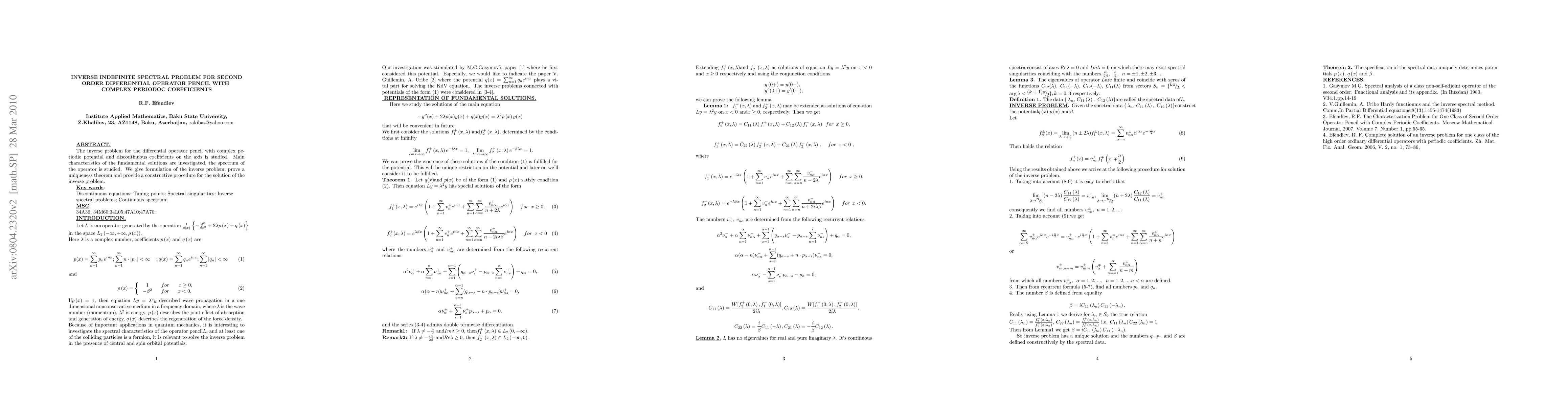 This paper investigates the inverse problem for a second-order indefinite non-self-adjoint differential operator pencil with complex periodic potential and discontinuous coefficients. It formulates the inverse problem, proves a uniqueness theorem, and provides a constructive method for solving it.