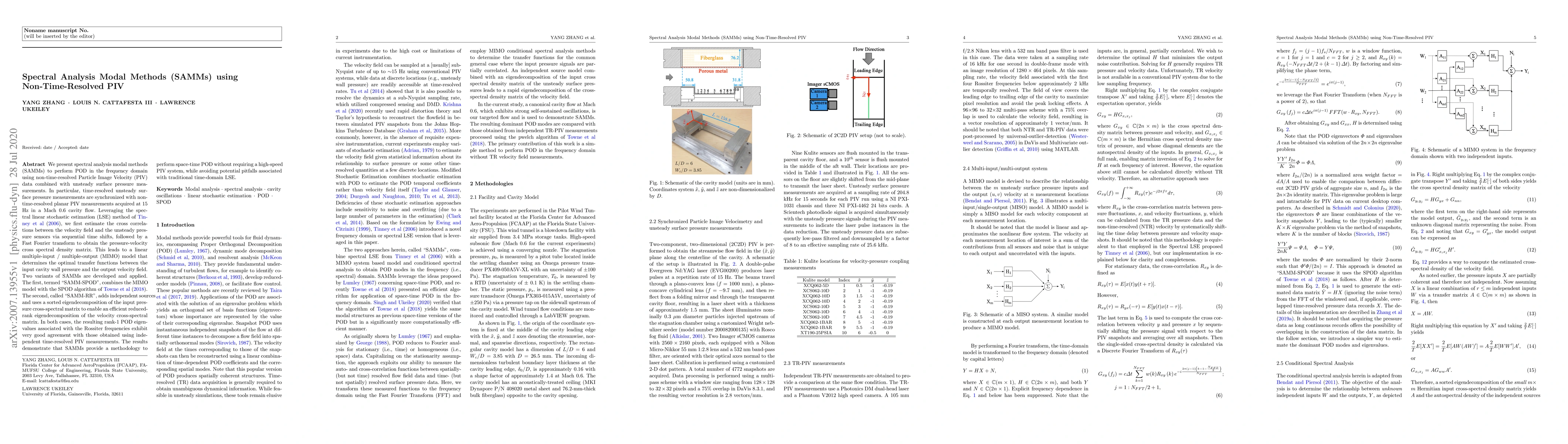 This paper introduces spectral analysis modal methods (SAMMs) for performing Proper Orthogonal Decomposition (POD) in the frequency domain using non-time-resolved PIV data and synchronized unsteady surface pressure measurements. The developed SAMMs, including SAMM-SPOD and SAMM-RR, show good agreement with time-resolved PIV results, demonstrating a cost-effective alternative to high-speed PIV systems.
