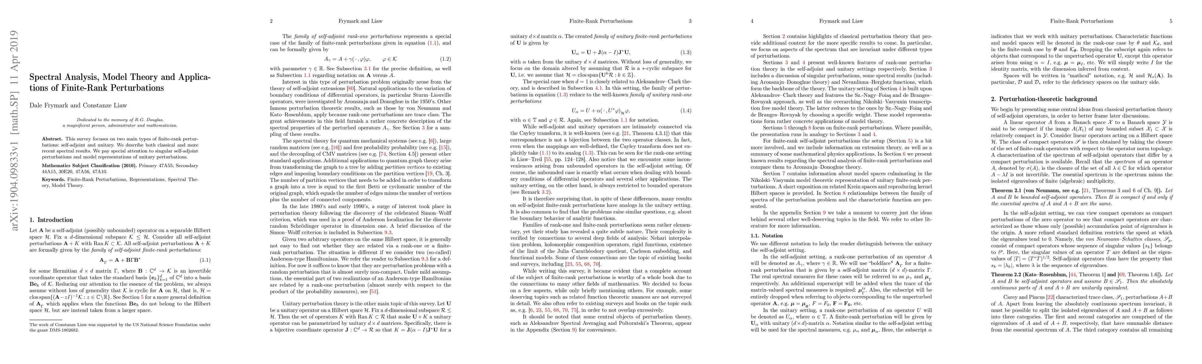 This paper surveys spectral analysis and model theory for self-adjoint and unitary finite-rank perturbations, emphasizing recent results on singular self-adjoint perturbations and model representations of unitary perturbations.