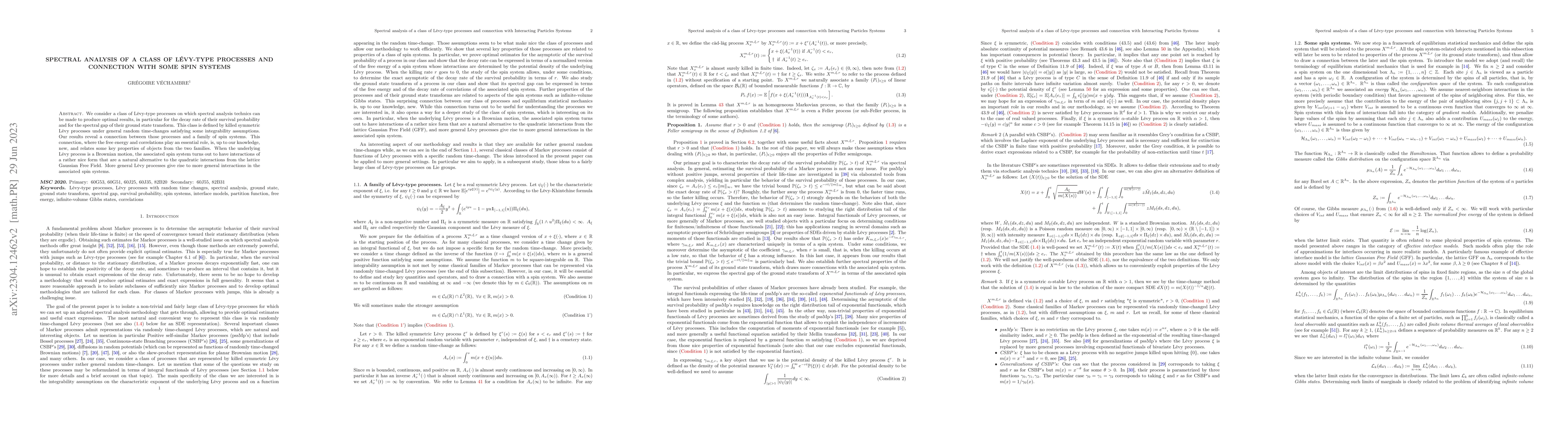 This paper explores a class of Lévy-type processes, revealing optimal spectral analysis results for their survival probability and spectral gap. It uncovers a novel connection between these processes and a family of spin systems, particularly when the underlying Lévy process is Brownian motion, offering an alternative to lattice Gaussian Free Field interactions.