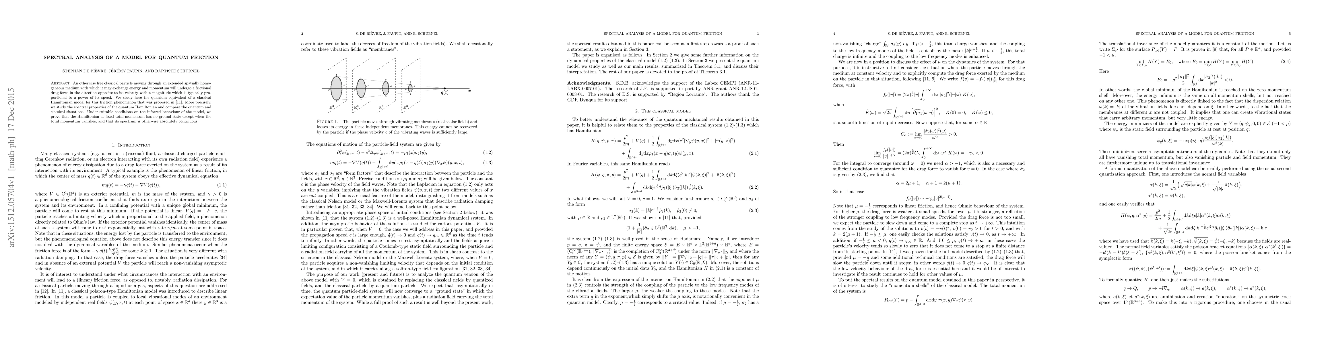 An otherwise free classical particle moving through an extended spatially homogeneous medium with which it may exchange energy and momentum will undergo a frictional drag force in the direction opposite to its velocity with a magnitude which is typically proportional to a power of its speed. We study here the quantum equivalent of a classical Hamiltonian model for this friction phenomenon that was proposed in [11]. More precisely, we study the spectral properties of the quantum Hamiltonian and compare the quantum and classical situations. Under suitable conditions on the infrared behaviour of the model, we prove that the Hamiltonian at fixed total momentum has no ground state except when the total momentum vanishes, and that its spectrum is otherwise absolutely continuous.