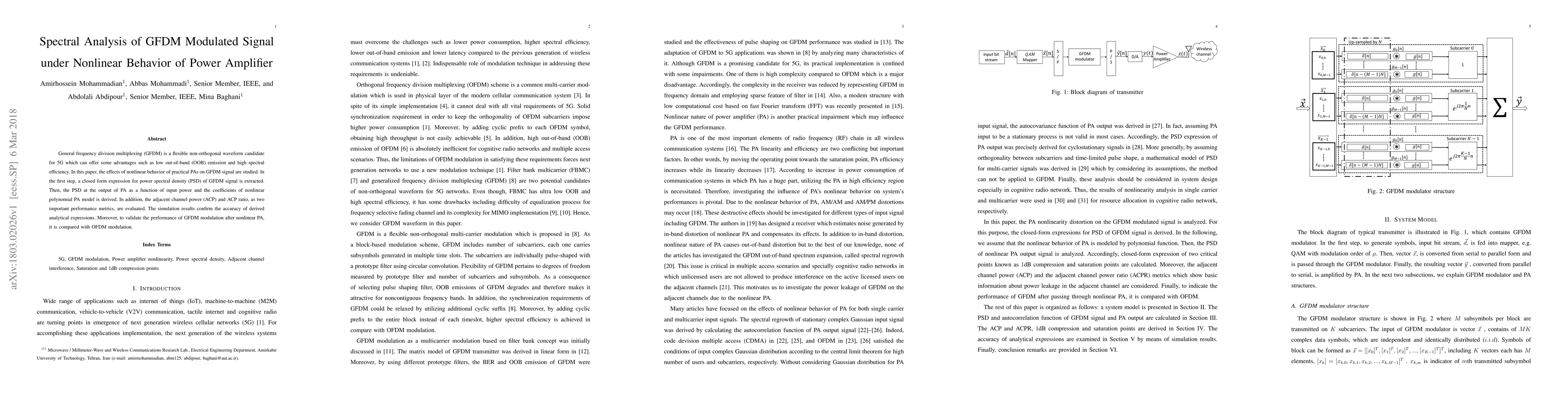 This paper investigates the impact of nonlinear power amplifier behavior on GFDM modulated signals, deriving a closed-form expression for GFDM signal power spectral density and analyzing adjacent channel power performance. Simulation results validate the analytical expressions and compare GFDM's performance with OFDM under nonlinear conditions.