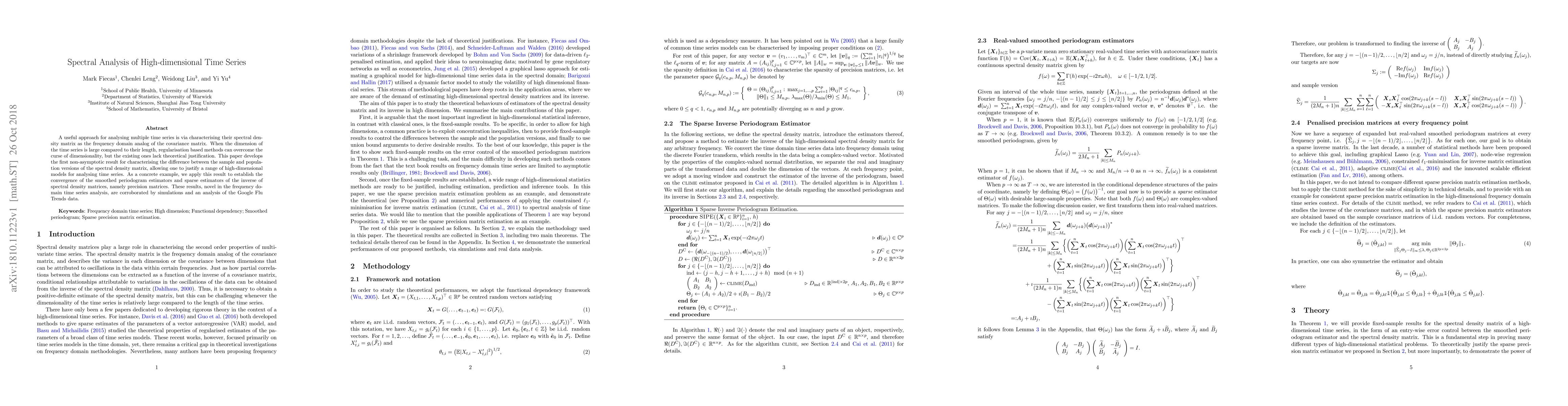 This paper develops a non-asymptotic result for the spectral density matrix in high-dimensional time series, providing theoretical justification for regularisation methods. It applies this result to establish convergence for smoothed periodogram and sparse estimators, validated through simulations and Google Flu Trends data analysis.