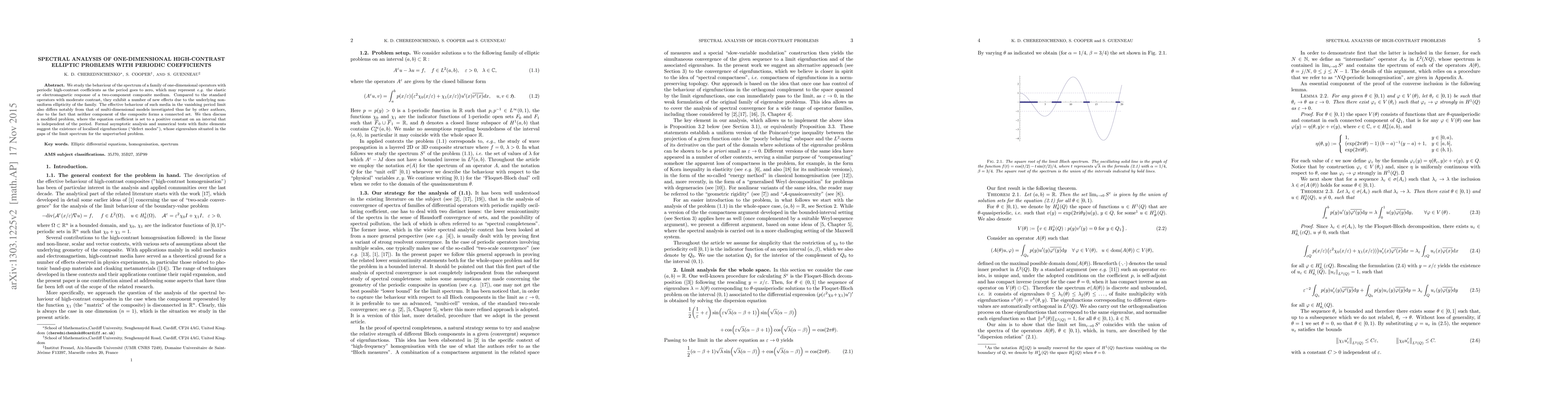 This paper investigates the spectral behavior of one-dimensional elliptic operators with high-contrast periodic coefficients as the period approaches zero, revealing new effects due to non-uniform ellipticity. It finds localized eigenfunctions ("defect modes") in modified problems, whose eigenvalues lie within the gaps of the limit spectrum for the unperturbed problem.