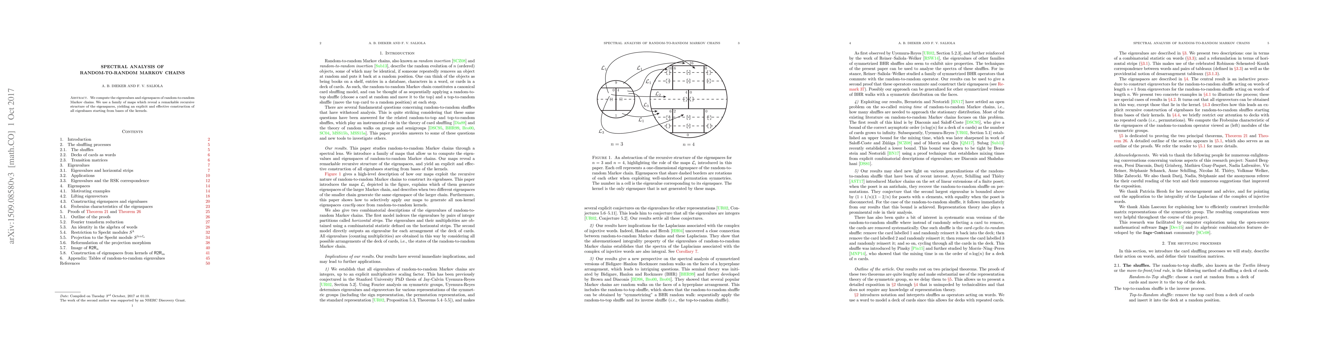 Researchers developed a method to analyze random-to-random Markov chains using spectral analysis, revealing a recursive structure of eigenspaces that enables an effective construction of eigenbases.