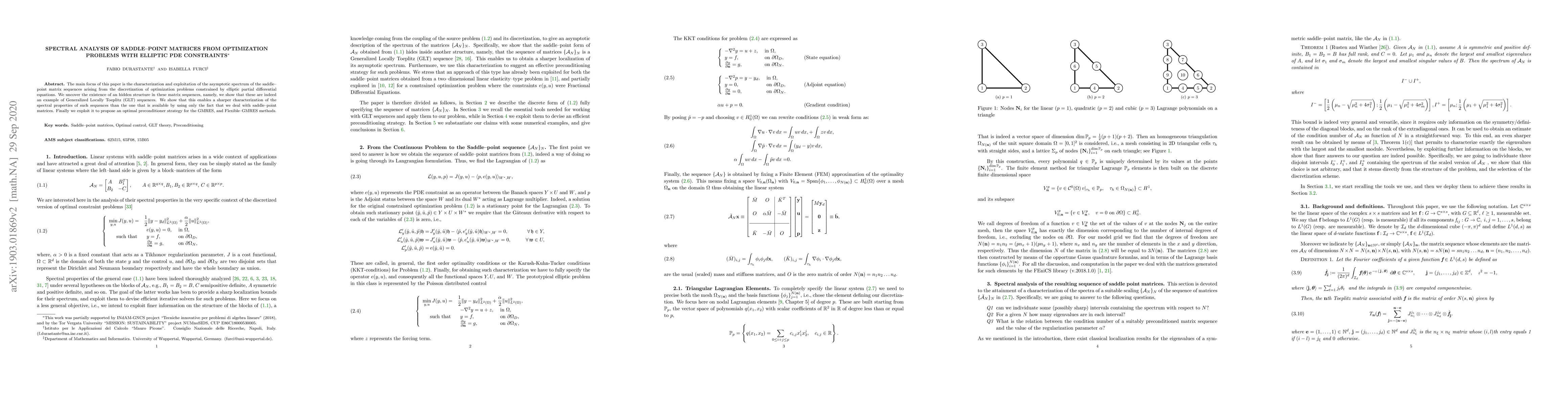 The main focus of this paper is the characterization and exploitation of the asymptotic spectrum of the saddle--point matrix sequences arising from the discretization of optimization problems constrained by elliptic partial differential equations. We uncover the existence of a hidden structure in these matrix sequences, namely, we show that these are indeed an example of Generalized Locally Toeplitz (GLT) sequences. We show that this enables a sharper characterization of the spectral properties of such sequences than the one that is available by using only the fact that we deal with saddle--point matrices. Finally, we exploit it to propose an optimal preconditioner strategy for the GMRES, and Flexible-GMRES methods.