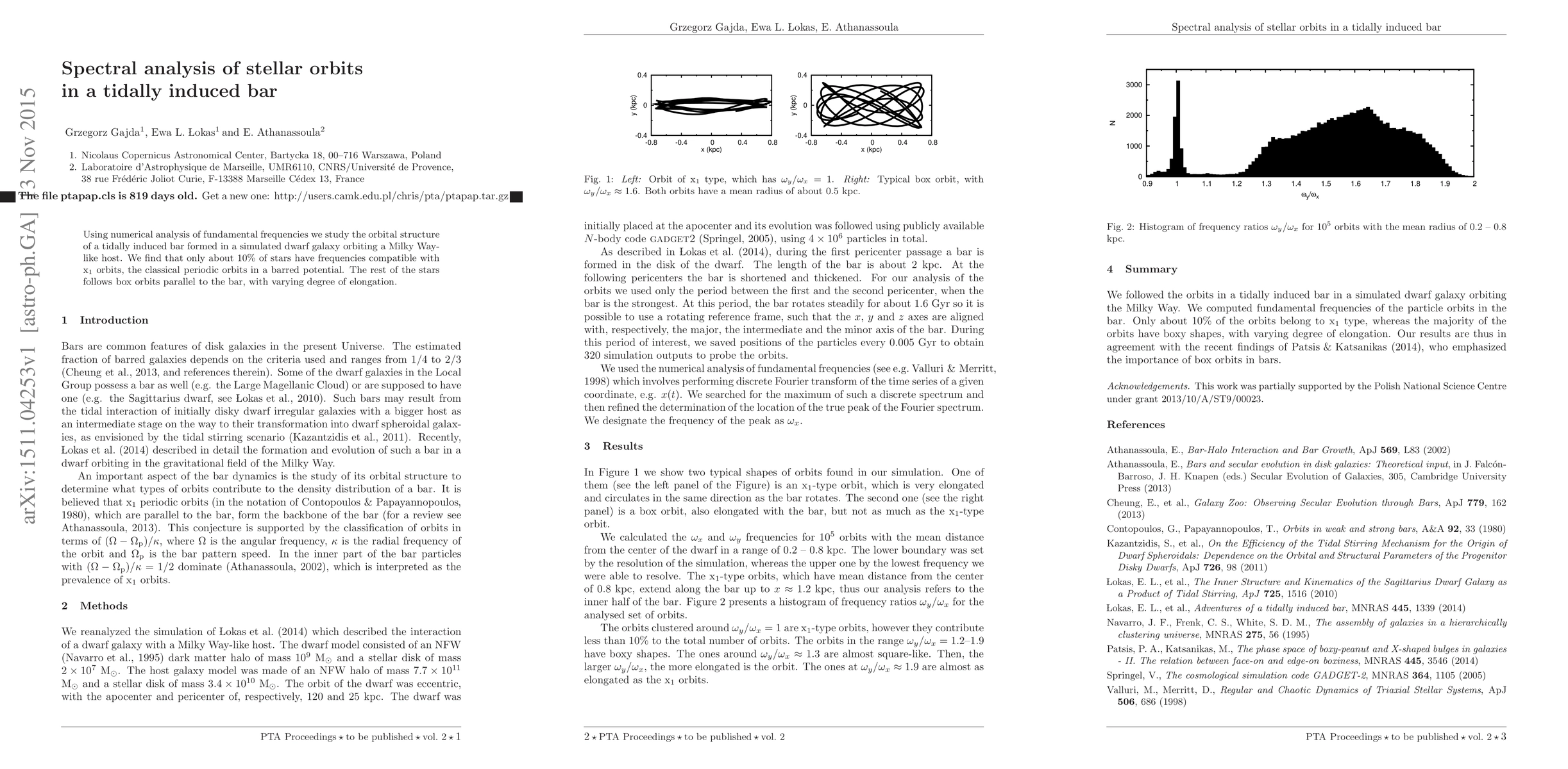 This research uses numerical analysis to explore the orbital dynamics of stars in a tidally induced bar within a dwarf galaxy. It reveals that only 10% of stars exhibit x1 orbits, while the majority follow box orbits parallel to the bar with varying elongation.