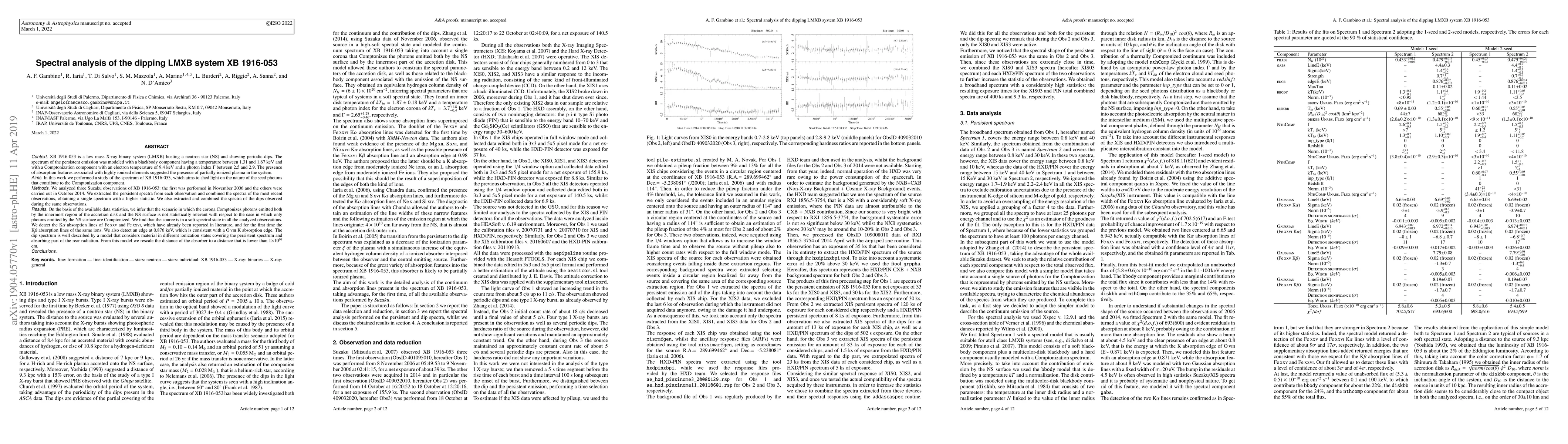 Context: XB 1916-053 is a low mass X-ray binary system (LMXB) hosting a neutron star (NS) and showing periodic dips. The spectrum of the persistent emission was modeled with a blackbody component having a temperature between 1.31 and 1.67 keV and with a Comptonization component with an electron temperature of 9.4 keV and a photon index $\Gamma$ between 2.5 and 2.9. The presence of absorption features associated with highly ionized elements suggested the presence of partially ionized plasma in the system. Aims: In this work we performed a study of the spectrum of XB 1916-053, which aims to shed light on the nature of the seed photons that contribute to the Comptonization component. Methods: We analyzed three Suzaku observations of XB 1916-053: the first was performed in November 2006 and the others were carried out in October 2014. We extracted the persistent spectra from each observation and combined the spectra of the most recent observations, obtaining a single spectrum with a higher statistic. We also extracted and combined the spectra of the dips observed during the same observations. Results: On the basis of the available data statistics, we infer that the scenario in which the corona Comptonizes photons emitted both by the innermost region of the accretion disk and the NS surface is not statistically relevant with respect to the case in which only photons emitted by the NS surface are Comptonized. We find that the source is in a soft spectral state in all the analyzed observations. We detect the K$\alpha$ absorption lines of \ion{Fe}{xxv} and \ion{Fe}{xxvi}, which have already been reported in literature, and for the first time the K$\beta$ absorption lines of the same ions. We also detect an edge at 0.876 keV, which is consistent with a \ion{O}{viii} K absorption edge. (Abridged)