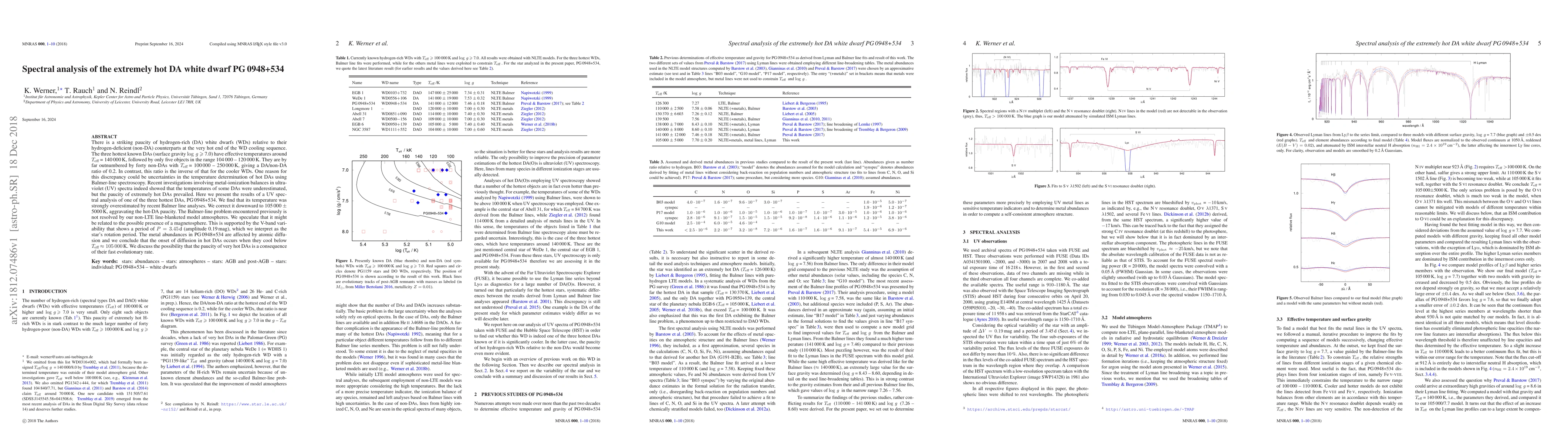 There is a striking paucity of hydrogen-rich (DA) white dwarfs (WDs) relative to their hydrogen-deficient (non-DA) counterparts at the very hot end of the WD cooling sequence. The three hottest known DAs (surface gravity log g $\geq$ 7.0) have effective temperatures around Teff = 140,000 K, followed by only five objects in the range 104,000 - 120,000 K. They are by far outnumbered by forty non-DAs with Teff = 100,000 - 250,000 K, giving a DA/non-DA ratio of 0.2. In contrast, this ratio is the inverse of that for the cooler WDs. One reason for this discrepancy could be uncertainties in the temperature determination of hot DAs using Balmer-line spectroscopy. Recent investigations involving metal-ionization balances in ultraviolet (UV) spectra indeed showed that the temperatures of some DAs were underestimated, but the paucity of extremely hot DAs prevailed. Here we present the results of a UV spectral analysis of one of the three hottest DAs, PG0948+534. We find that its temperature was strongly overestimated by recent Balmer line analyses. We correct it downward to 105,000 $\pm$ 5000 K, aggravating the hot-DA paucity. The Balmer-line problem encountered previously is not resolved by our non-LTE line-blanketed model atmospheres. We speculate that it might be related to the possible presence of a magnetosphere. This is supported by the V-band variability that shows a period of P=3.45 d (amplitude 0.19 mag), which we interpret as the star's rotation period. The metal abundances in PG0948+534 are affected by atomic diffusion and we conclude that the onset of diffusion in hot DAs occurs when they cool below Teff about 105,000 K. We discuss the possibility that the paucity of very hot DAs is a consequence of their fast evolutionary rate.