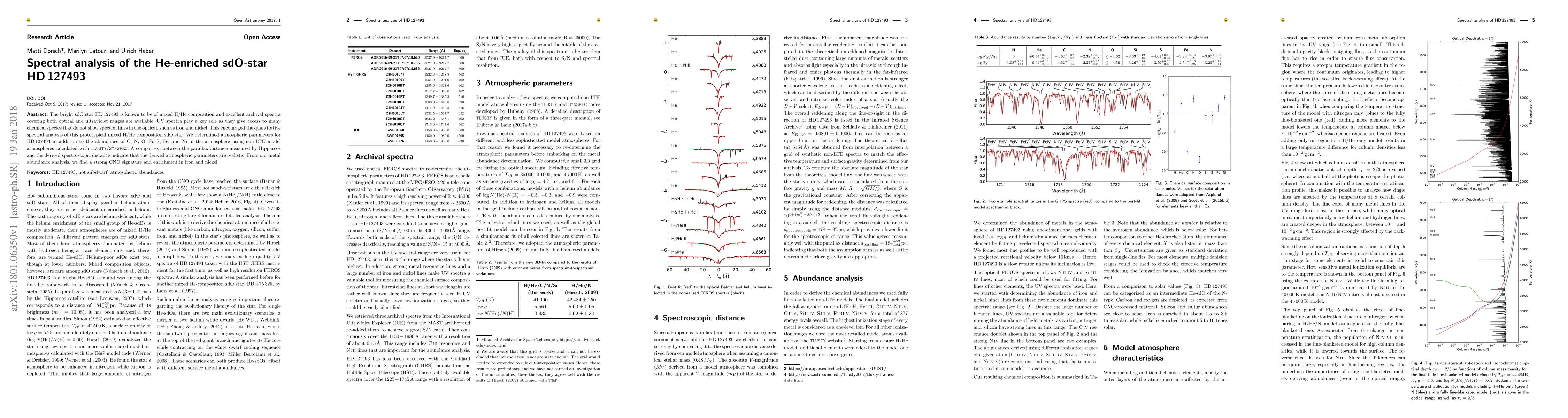 The bright sdO star HD 127493 is known to be of mixed H/He composition and excellent archival spectra covering both optical and ultraviolet ranges are available. UV spectra play a key role as they give access to many chemical species that do not show spectral lines in the optical, such as iron and nickel. This encouraged the quantitative spectral analysis of this prototypical mixed H/He composition sdO star. We determined atmospheric parameters for HD 127493 in addition to the abundance of C, N, O, Si, S, Fe, and Ni in the atmosphere using non-LTE model atmospheres calculated with TLUSTY/SYNSPEC. A comparison between the parallax distance measured by Hipparcos and the derived spectroscopic distance indicate that the derived atmospheric parameters are realistic. From our metal abundance analysis, we find a strong CNO signature and enrichment in iron and nickel.