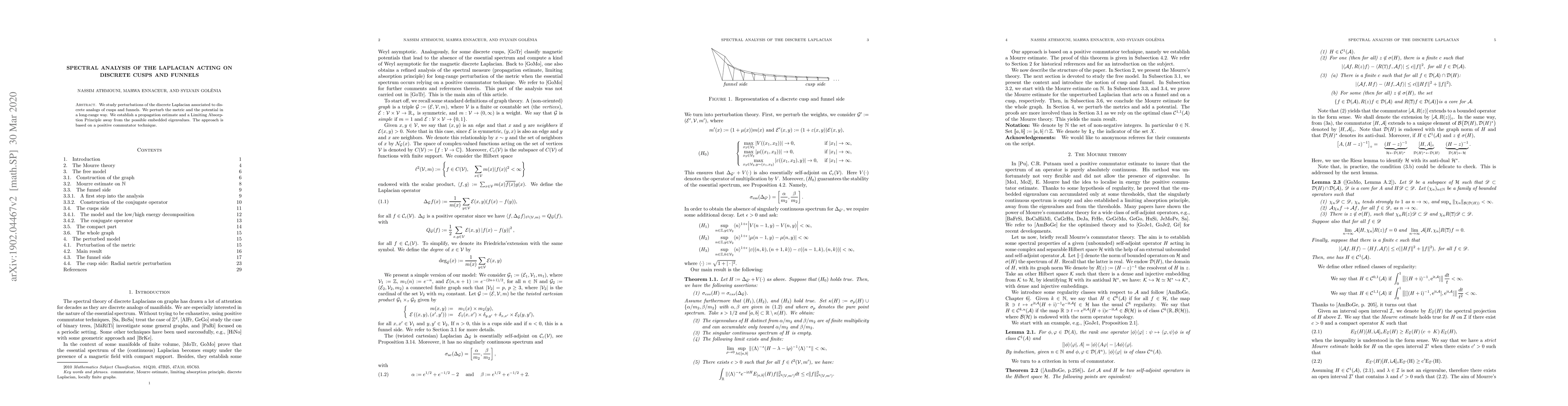 We study perturbations of the discrete Laplacian associated to discrete analogs of cusps and funnels. We perturb the metric and the potential in a long-range way. We establish a propagation estimate and a Limiting Absorption Principle away from the possible embedded eigenvalues. The approach is based on a positive commutator technique.