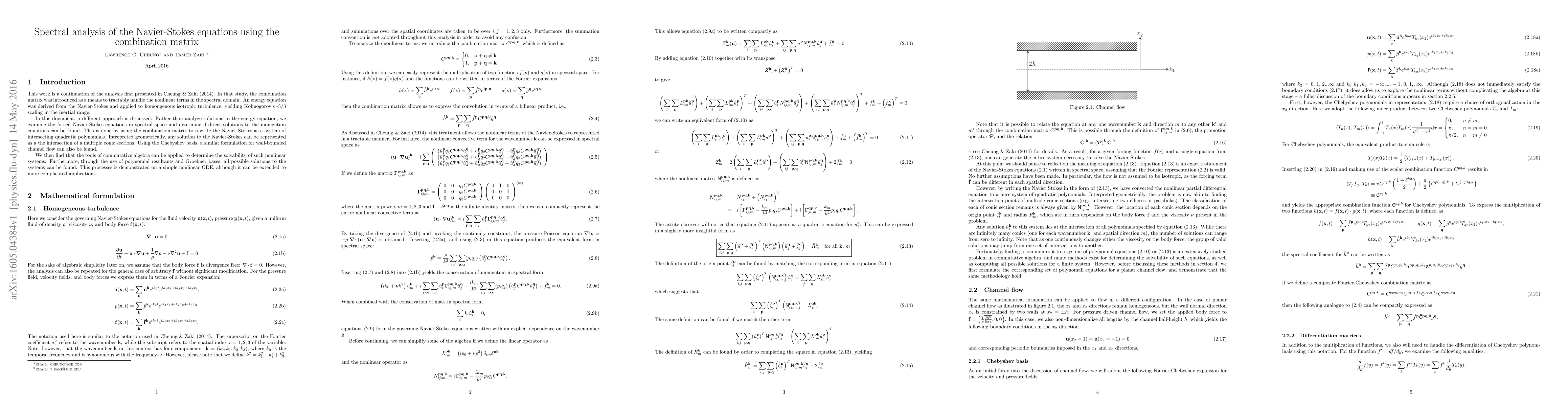 This work is a continuation of the analysis first presented in Cheung & Zaki (2014). In that study, the combination matrix was introduced as a means to tractably handle the nonlinear terms in the spectral domain. In this work, a different approach is discussed. Rather than analyze solutions to the energy equation, we examine the forced Navier-Stokes equations in spectral space and determine if direct solutions to the momentum equations can be found. This is done by using the combination matrix to rewrite the Navier-Stokes as a system of intersecting quadratic polynomials. Intrepreted geometrically, any solution to the Navier-Stokes can be represented as a the intersection of a multiple conic sections.