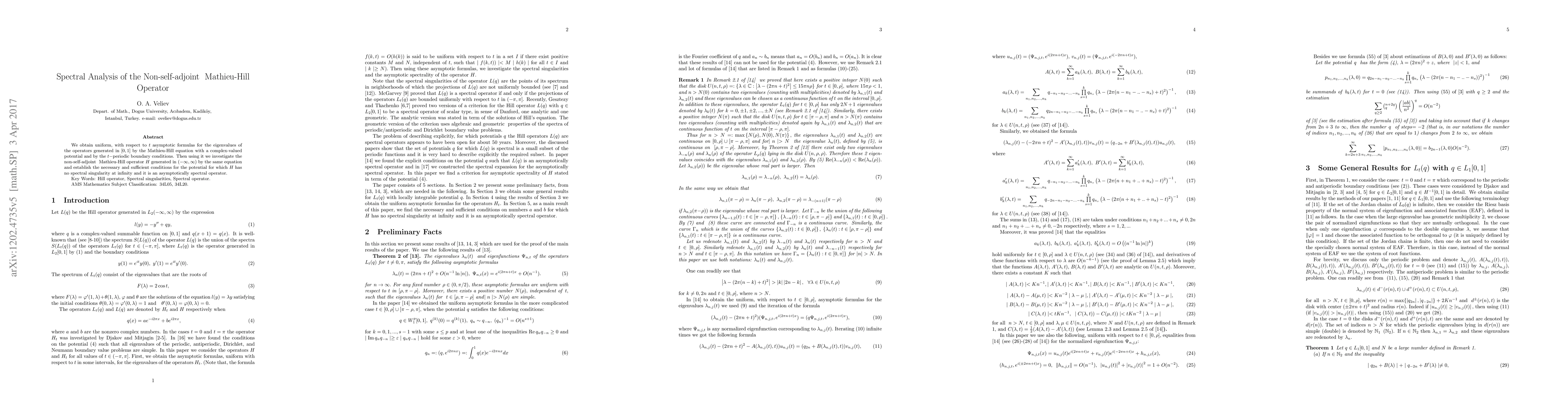 We obtain uniform, with respect to t asymptotic formulas for the eigenvalues of the operators generated in (0,1) by the Mathieu-Hill equation with a complex-valued potential and by the t-periodic boundary conditions. Then using it we investigate the non-self-adjoint Mathieu-Hill operator H generated in the allreal line by the same equation and establish the necessary and sufficient conditions for the potential for which H has no spectral singularity at infinity and it is an asymptotically spectral operator.