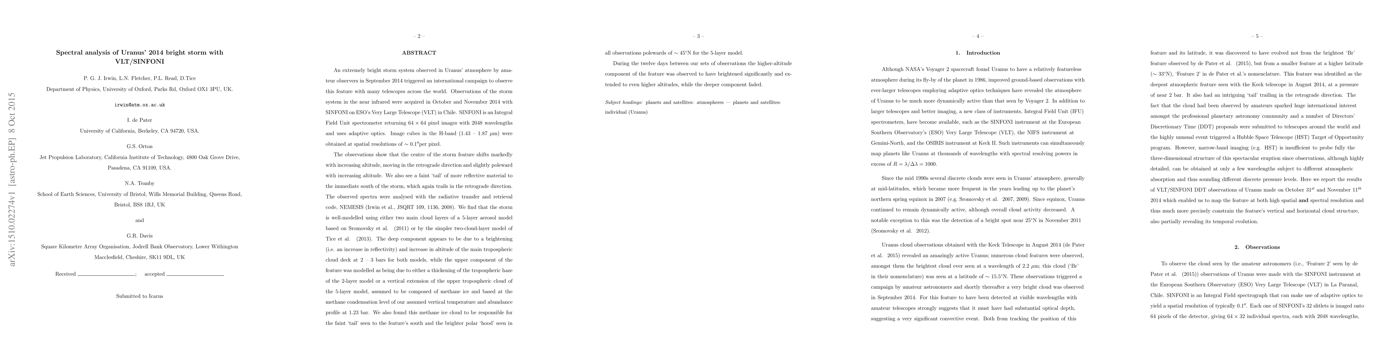 This study analyzes a bright storm on Uranus observed in 2014 using VLT/SINFONI, revealing a shift in storm center with altitude and a reflective tail. The storm's spectra suggest it is composed of two main cloud layers, with changes in reflectivity and altitude of tropospheric clouds over 12 days.